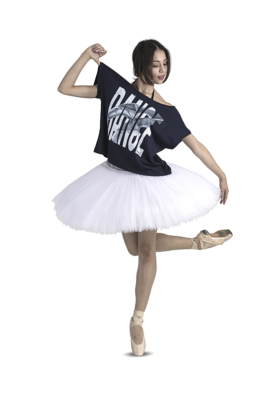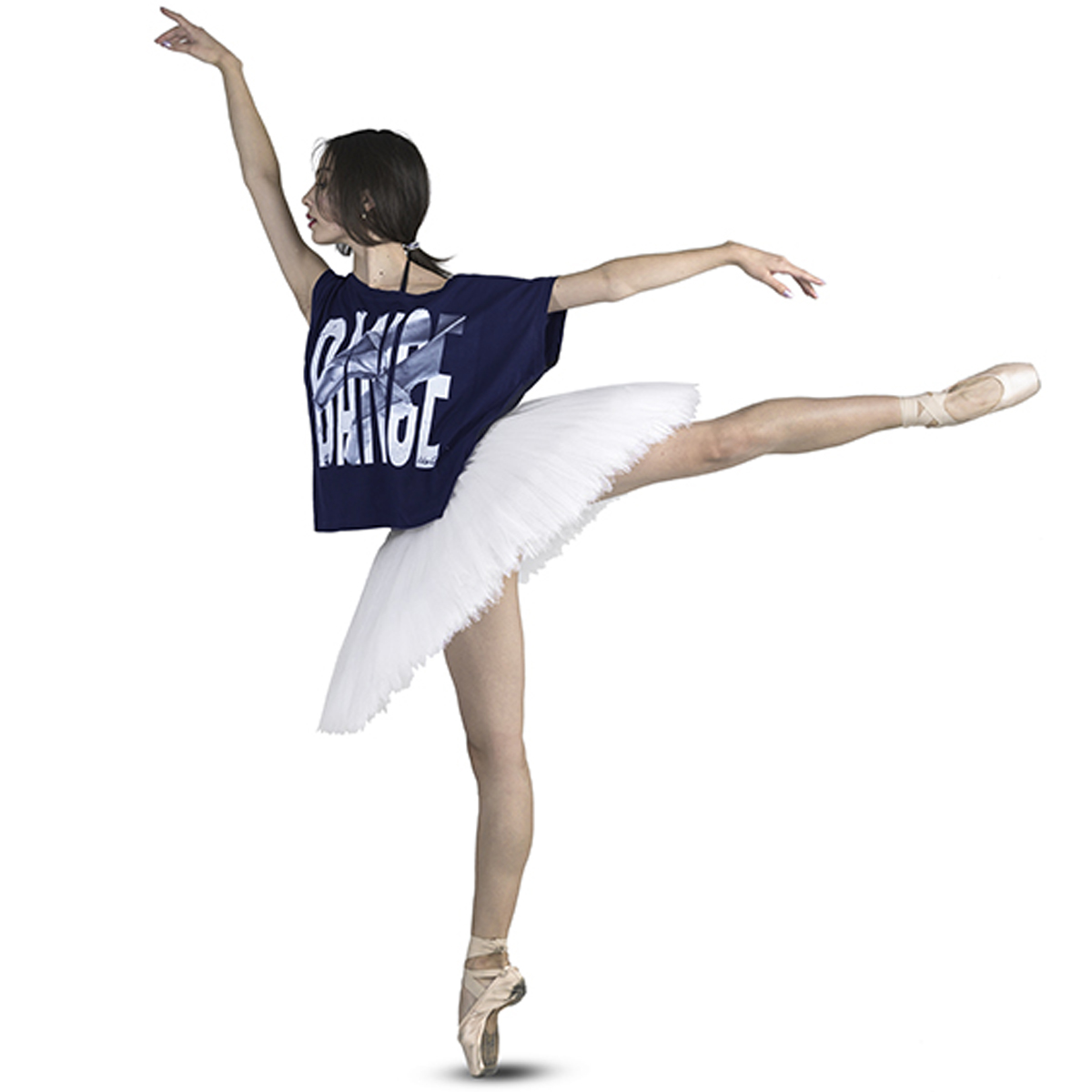 Cooles Oversize Crop Top in edlem dunkelblau mit großem Print DANCE - trage es locker, im Workout über Dein Practice Tutu oder auf der Strasse. Butterweiche, organische Baumwolle mit hochwertigem Print der auch beim Waschen hält !! Die angesagte Shirt Collection von Like G. Italien lagert jetzt bei uns in zahlreichen Varianten für Ballett und Modern