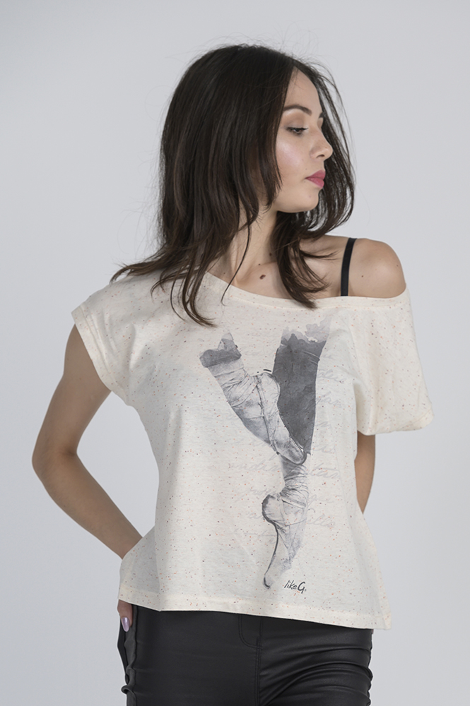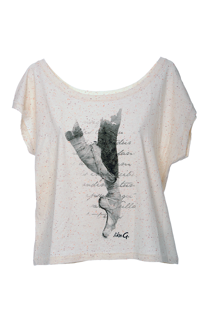Hell creme-rosa meliertes Oversize Crop Top mit Ballettschuhmotiv - im Workout oder in der Schule ein Statement für Deine Passion. Butterweiche, organische Baumwolle mit hochwertigem, diskretem Print der auch beim Waschen hält !! Die angesagte Shirt Collection von Like G. Italien lagert jetzt bei uns in zahlreichen Varianten für Ballett und Modern, für groß und klein...
