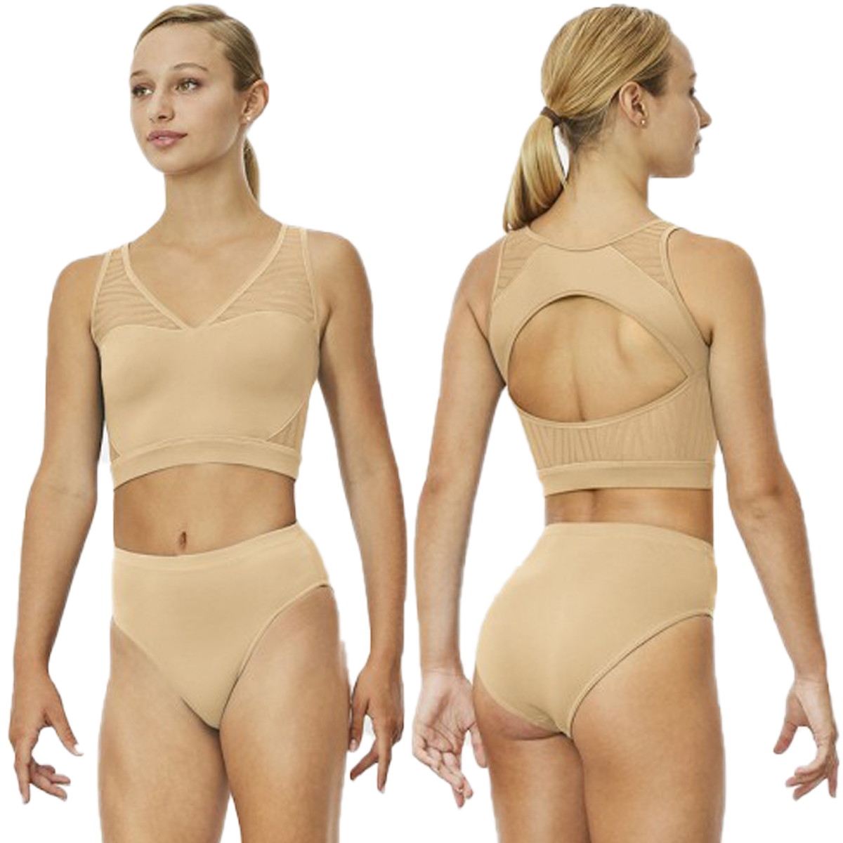 Ballett Höschen CARA (R1974) in der Farbe sand (tan)  mit hoher Taille  - vergleichbar mit einem elastischen Shorts ohne Bündchen, aber im Schnitt und Beinabschluss wie ein Ballettanzug um Deine Beinlinie zu zeigen.