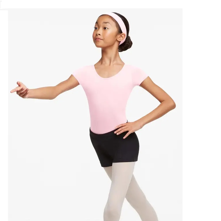Klassisches kurzarm Ballett Trikot in Weiss von Capezio. Aus Tactel - einem atmungsfähigen und schnell trocknenden Stoff hergestellt, mit weichem Tragekomfort der sich schön an den Körper anpasst. Vorn blickdicht gefüttert mit hautfarbenem Stoff. Moderater Hals- und Beinausschnitt. Inklusive farblich passendem Gürtelchen, daher RAD geeignet.