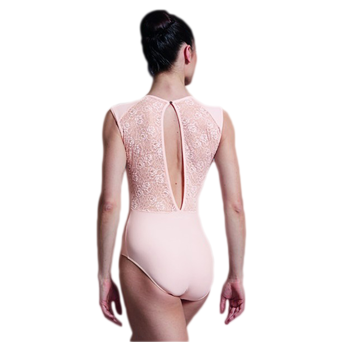 Elegantes Ballett-Trikot von Ballet Rosa mit langem schmalen Rückenausschnitt - RITA ist im Nacken von einem Knopf gehalten wird, Rücken komplett sowie oberes Dekolleté aus elastischer Spitze, vorne voll gefüttert (nicht transparent)