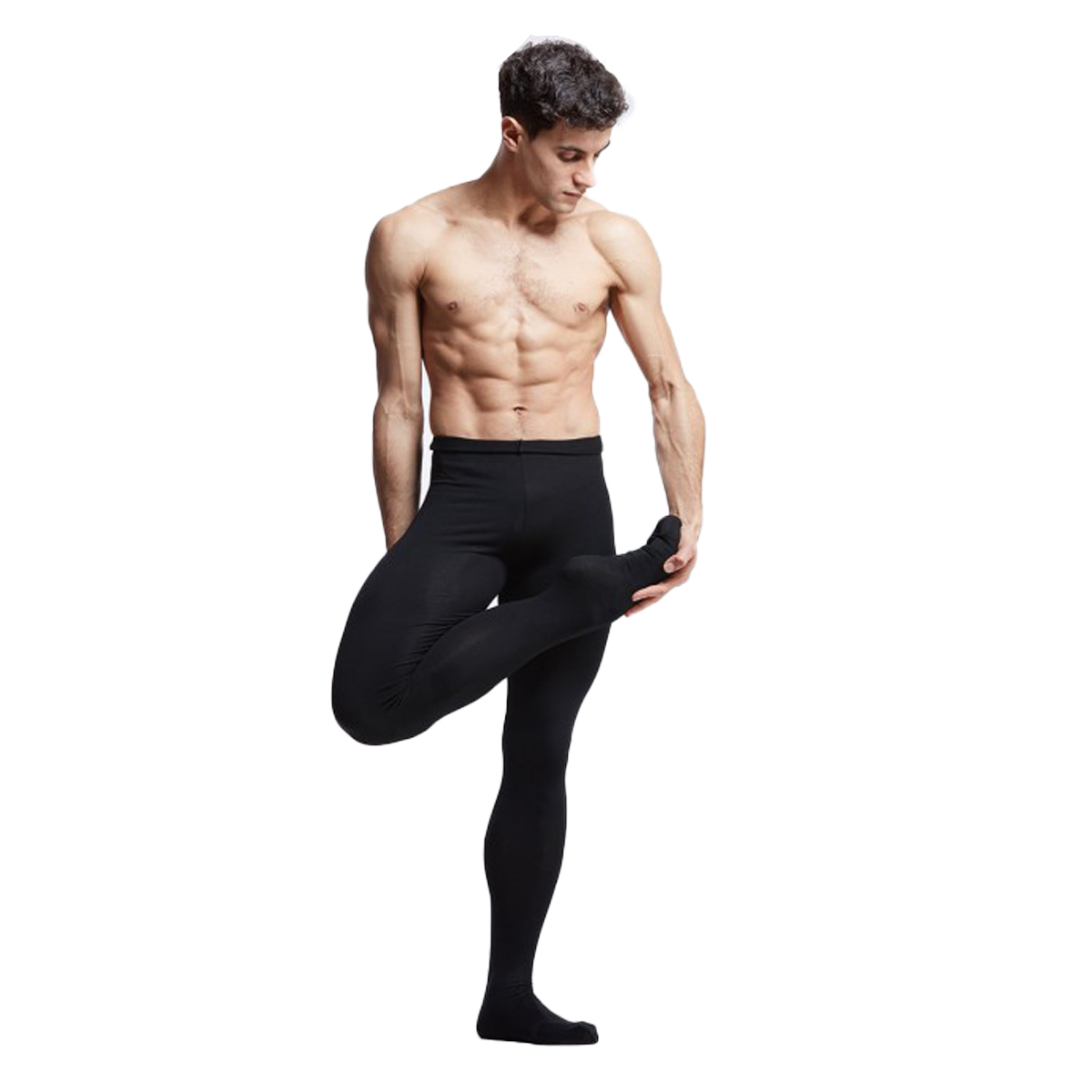 Völlige undurchsichtige Strumpfhose mit Füßen für Männer aus Viskose (Pflanzliche Fasern). Ein Teil der Grundbekleidung von Tänzern (Körperbetonte Strumpfhosen und T-Shirt). Top Komfort.