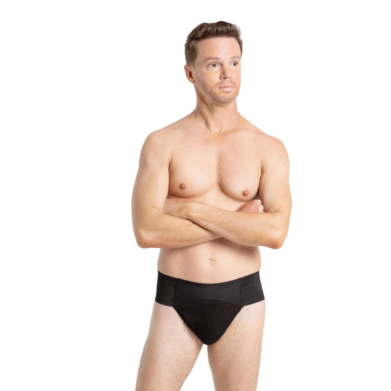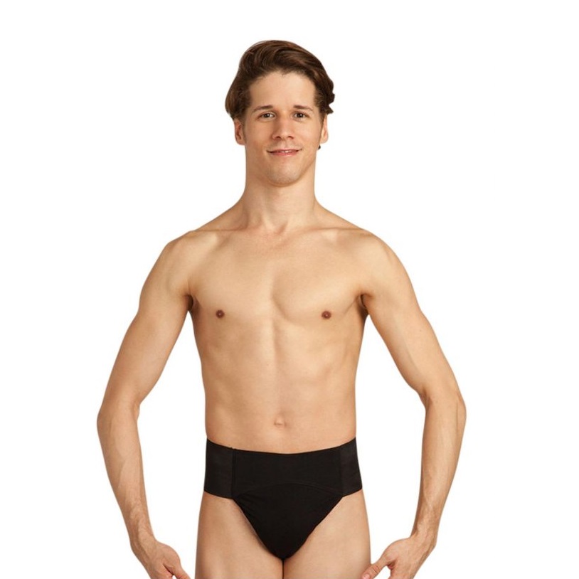 Das gesteppte Suspensorium in schwarz oder hautfarben aus dem Hause Capezio bietet guten Sitz durch breiten elastischen Bund.