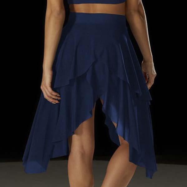 Schlupfrock mit stabilem und gut gearbeitetem Taillenbund, asymetrisch geschnitten und im oberen Bereich doppellagig, trage ihn hinten und vorn lang oder an den Seiten.. wie Dein Outfit gerade sein soll. Die Performance Kollektion von Mirella by Bloch - Kombiniere Crop-Tops und Höschen, um einen atemberaubenden Look zu erzielen. Dieser stylische Rock in dunkelblau hat eine schöne Weite. Eine vielseitige Ergänzung zu Deiner Performance- und Klassenkollektion! Siehe auch die Bodys und Tops in gleicher Farbgebung.