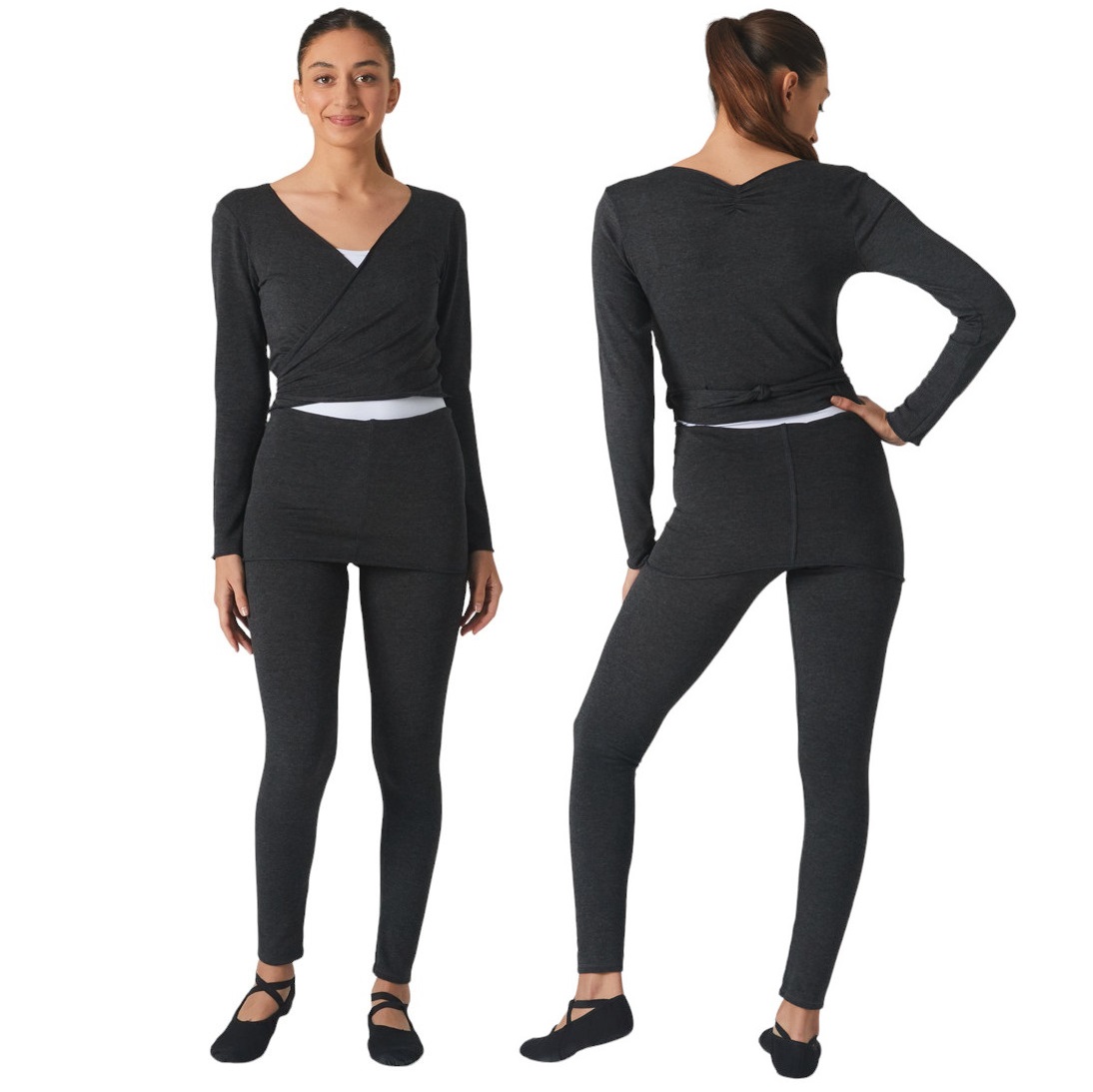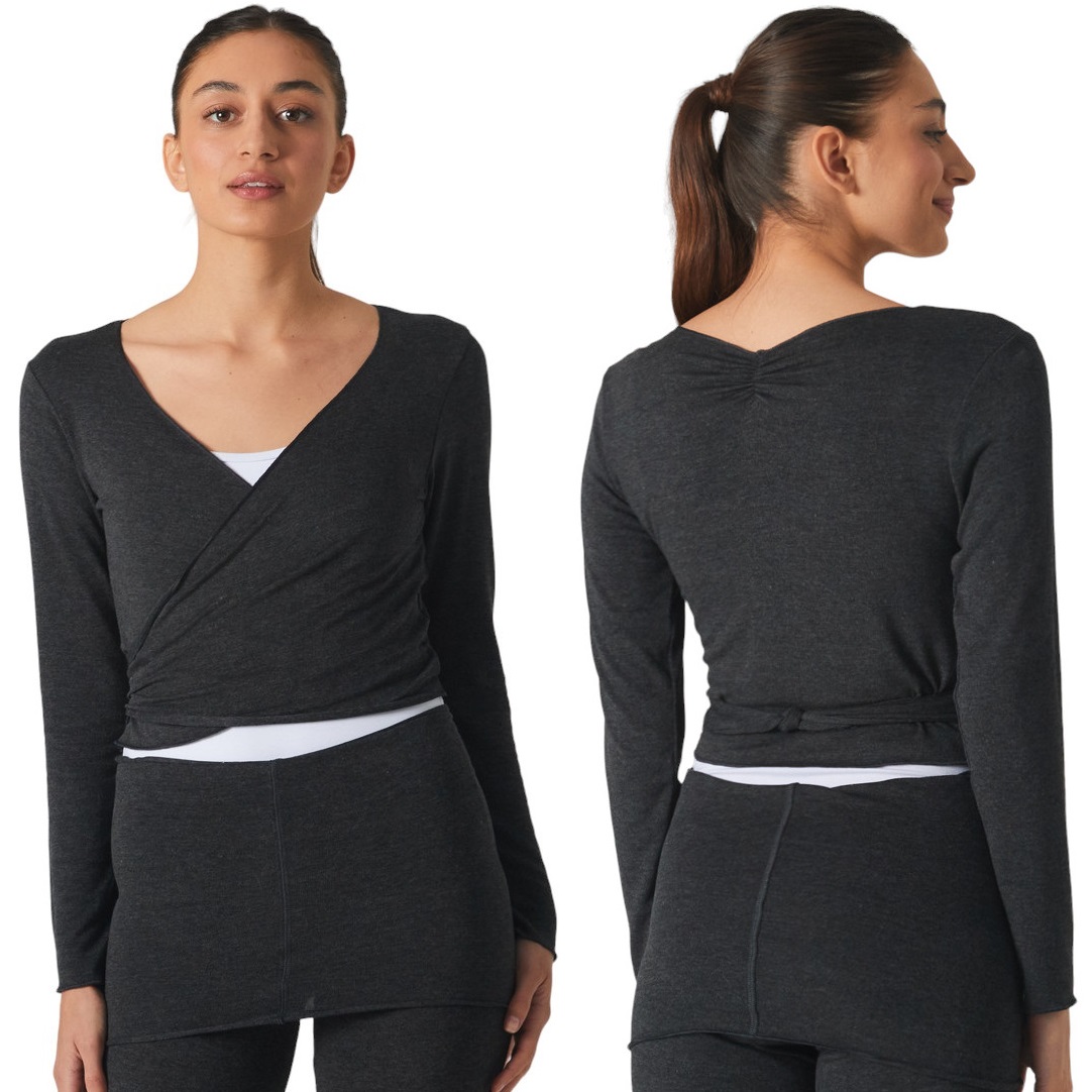 Für Ballett entwickelt eignet sich diese Wickeljacke auch für Yoga-Praktizierende. Dieses unverzichtbare Accessoire für Ihr Training ist ideal, um mit Eleganz warm zu bleiben. Die Wickeljacke kann über einem Body, einem BH oder einem Top getragen werden. Der leicht geraffte Rückenausschnitt und der melierte Stoff verleihen Ihrem Outfit einen Hauch von Modernität und bieten Ihnen gleichzeitig hohen Tragekomfort.