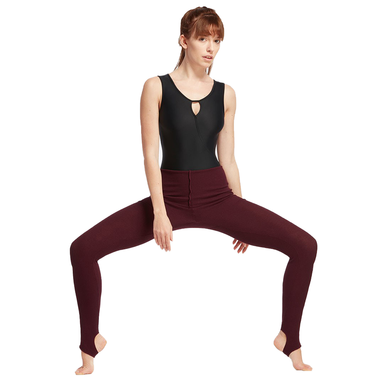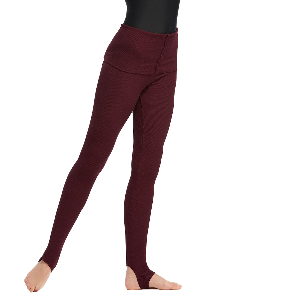 Die Warm-Up Leggins Jodo aus dem Hause TempsDanse in Bordeaux mit Steg und Umschlagbund. Diese Leggings wurde speziell für das Aufwärmen entwickelt. Die Bein-Stulpen (mit Fersenloch) verhindern das Verrutschen und garantieren freie Bewegungsabläufe. Sehr feminin ist ein breiter Umschlagbund verstärkt den Halt an den Hüften.