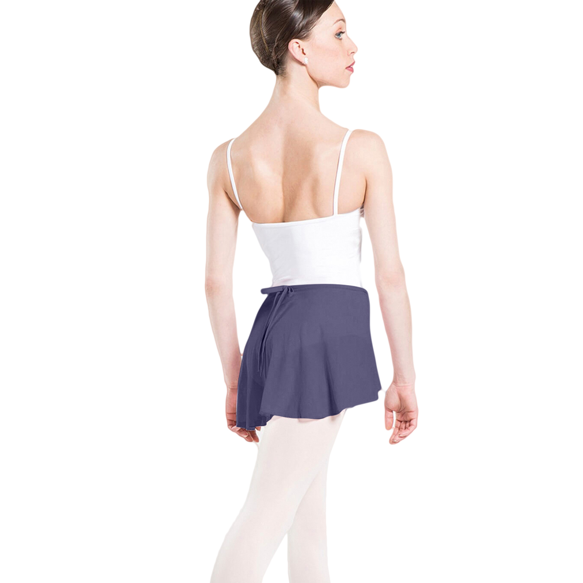 Dolly ist ein Schlupfröckchen von Wear Moi in Erwachsenen und Kindergrößen aus weichem Stretch-Mesh. Die gebundene, aber vernähte Schleife aus dem elastischen Bändchen gibt den Eindruck eines Wickelrockes - immer eine perfekte Schleife im Rücken - perfekt für Klassen in denen Kinder noch nicht wickeln können, oder für die erwachsene Ballerina, die keine Zeit oder Lust hat, die Schleife zu binden.