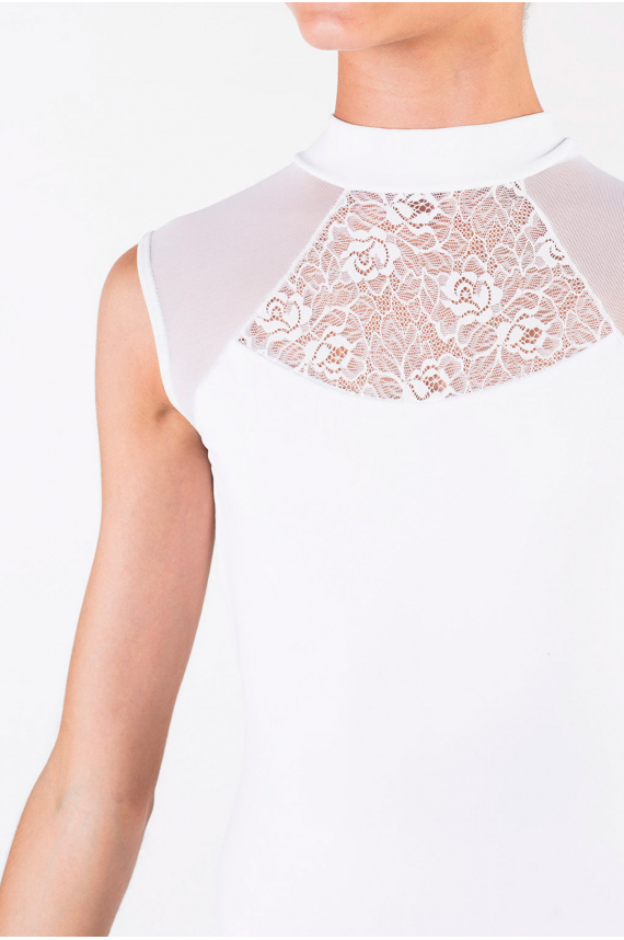 ANITA - Edler hochgeschlossener Body mit tiefem Rücken von Ballet Rosa, schwarz oder weiß, weiche Mesheinsätze und schöner Spitzeneinsatz vorn lassen dieses Modell sehr zart wirken, aus schöner glatt fließender und sehr elastischer (80% Polyamid mit 20 % Elasthan) Microfibre Qualität - wunderschön auch zum Tutu !!
