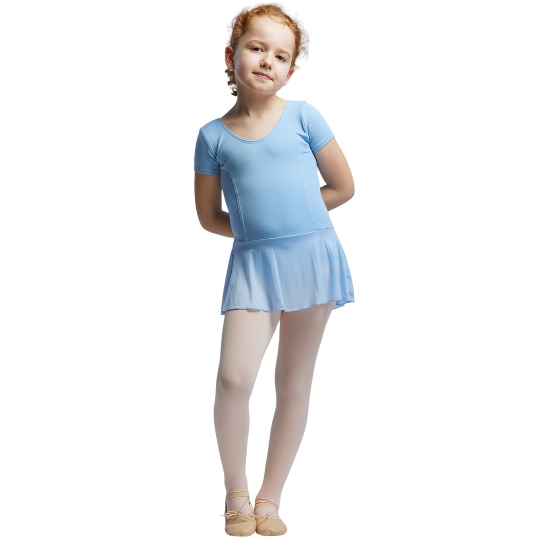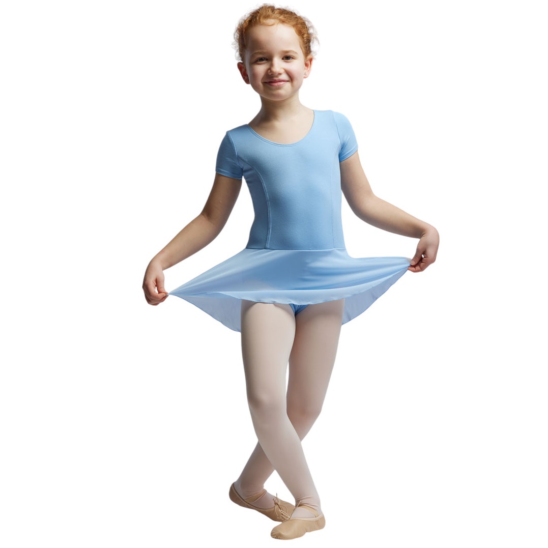MALOU by TEMPSDANSE - KINDERTRIKOT MIT ROCK - Kurzärmliger Kinder-Body aus Viskose. Schöne Silhouette durch die Prinzess-Nähte. Kleines zartes Röckchen aus Stretch-Voile. Der Body aus pflanzlicher Viskose ist weich und anschmiegsam auf der Haut einer kleinen Ballerina. Rosa oder Weiss bei uns auf Lager...