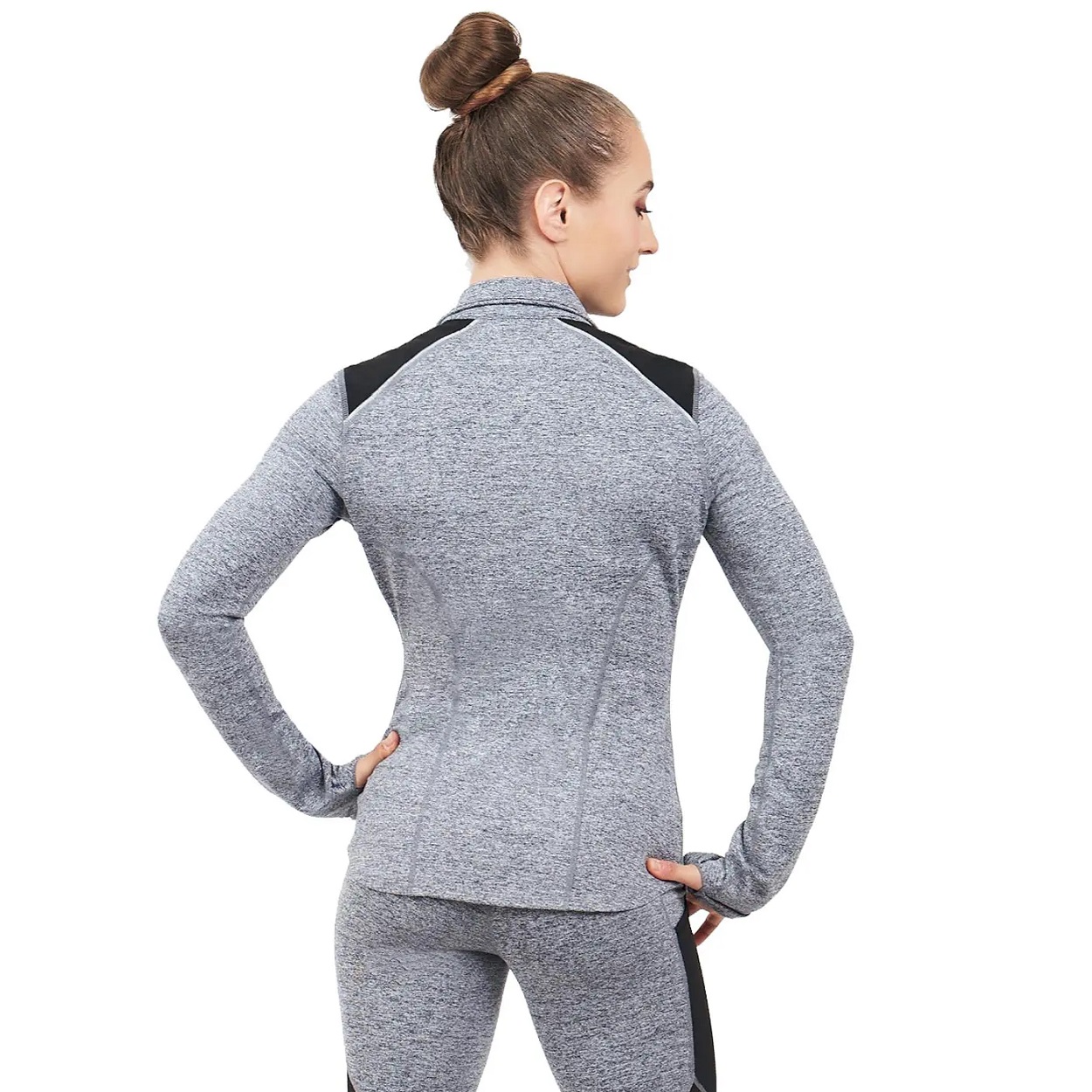 Graue Reißverschlussjacke mit schwarzem, elastischem 4-Wege-Netz an den Schultern.... mehr