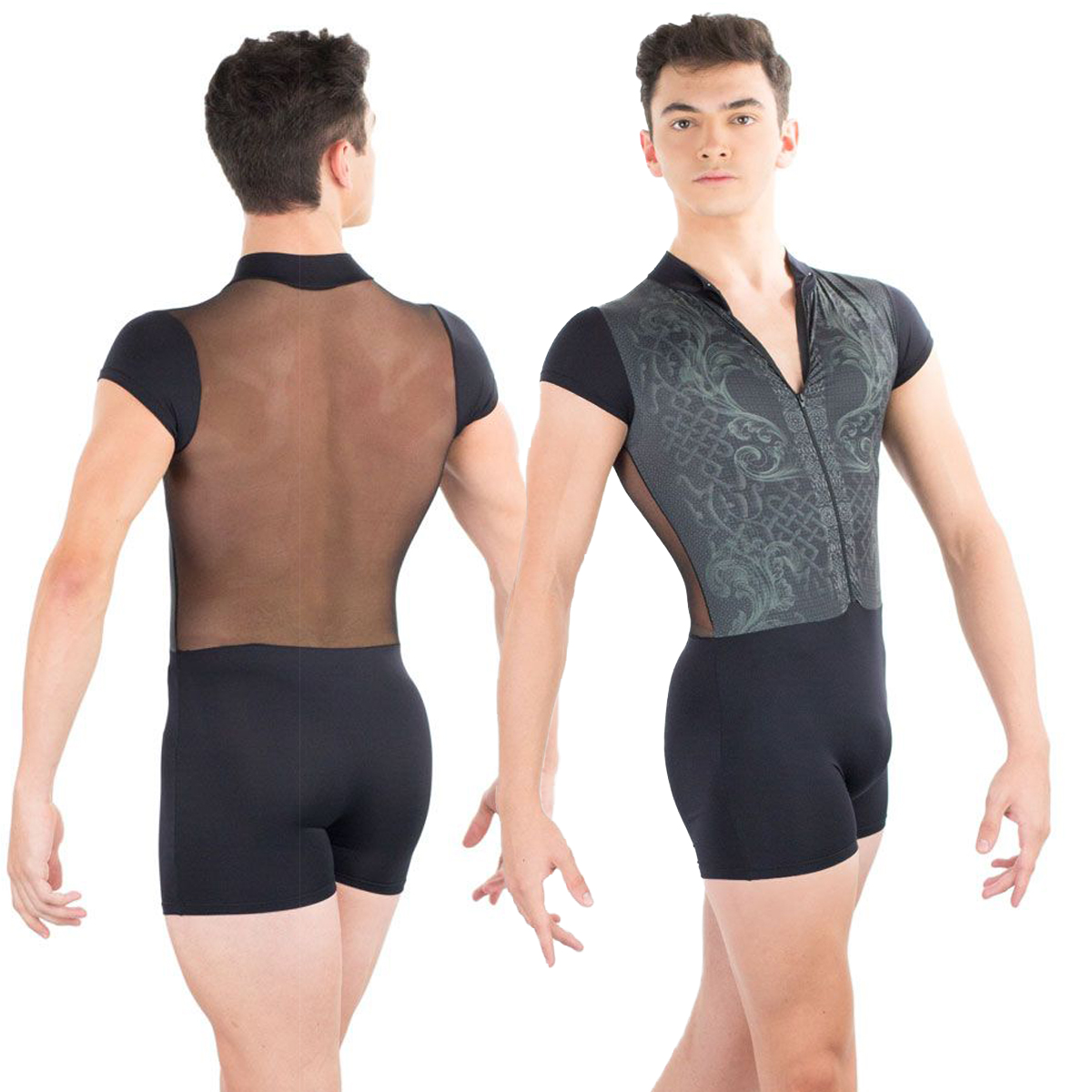 RAONI - aus der neuen Herren Ballett Kollektion POMPEII mit viel Mesh von BALLET ROSA - eine komplette und wirklich umwerfende Kollektion die sich nur dem männlichen Tänzer widmet. Ballet Rosa verreint Mode und Funktionalität - inspiriert von dem, was männliche Tänzer wirklich brauchen. Das Material ist feuchtigkeitsausgleichend und anschmiegsam in jeder Bewegung. Für den modischen Aspekt sorgt geprintetes Mesh, anschmiegsam und weich auf der Haut. Raoni hat die Grundfarbe schwarz mit grauem Print auf schwarzem Mesh vorne.