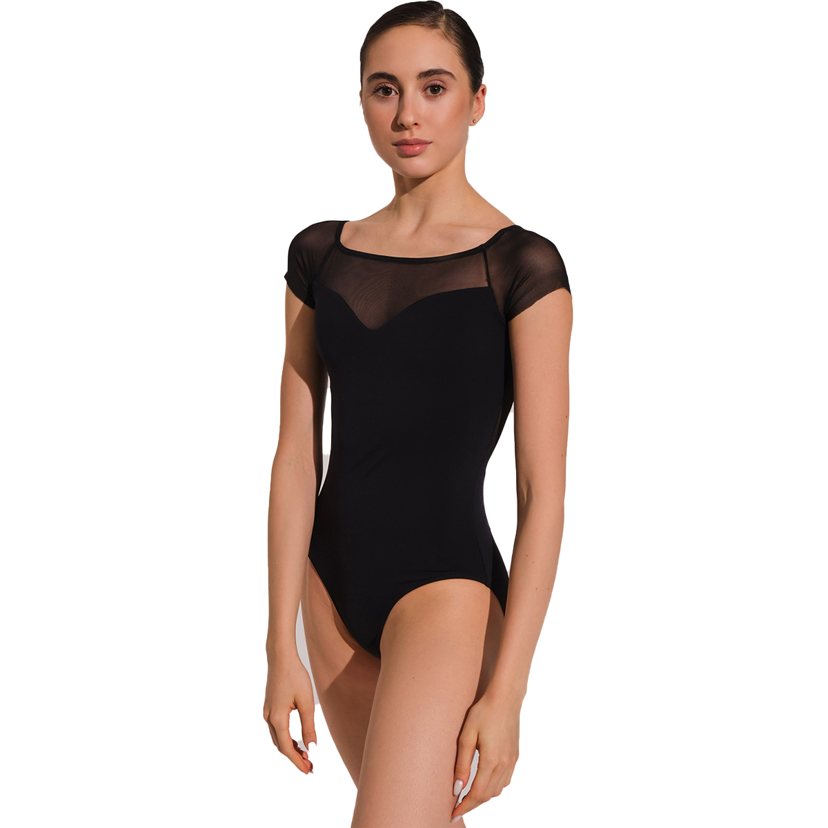 Wunderbares, beflocktes Mesh-Design mit niedrigem Rücken und Sweetheart-Ausschnitt. Zarte Flügelärmel, und bedrucktes weiches Mesh, dass die Illusion eines Tattoo-Rückens erzeugt. Bequeme, nicht eingefasste Ärmel.
