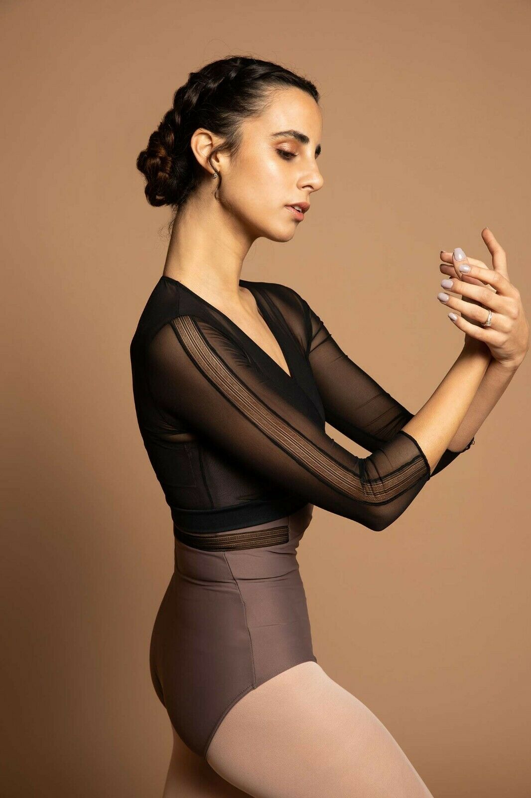 Sophisticated - das Meshtop 6574 aus dem Hause Intermezzo in Wickeloptik mit einer delikaten Zierapplikationen am Arm.