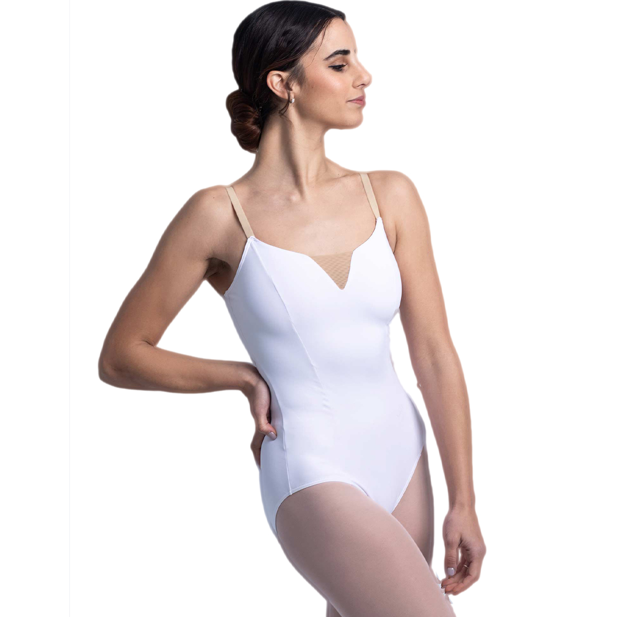 Das Balletttrikot 31616 aus dem Hause Intermezzo mit beigen Trägern und beigem Mesheinsatz im Dekolettébereich.