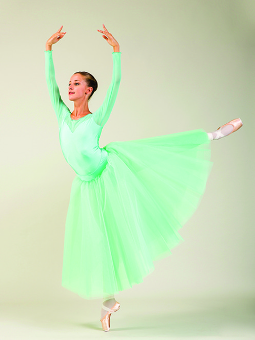 Langes Romantik Tutu in zartem mint aus dem Hause Ballet Rosa - 3 Lagen Soft-Tull über 1 Lage festerem Tüll geben diesem Romantik-Tutu Stand und Grazie, Höschenteil aus matt Lycra - in schwarz, poudre, mint-grün, weiss oder rosa (flieder mit ein wenig Wartezeit)