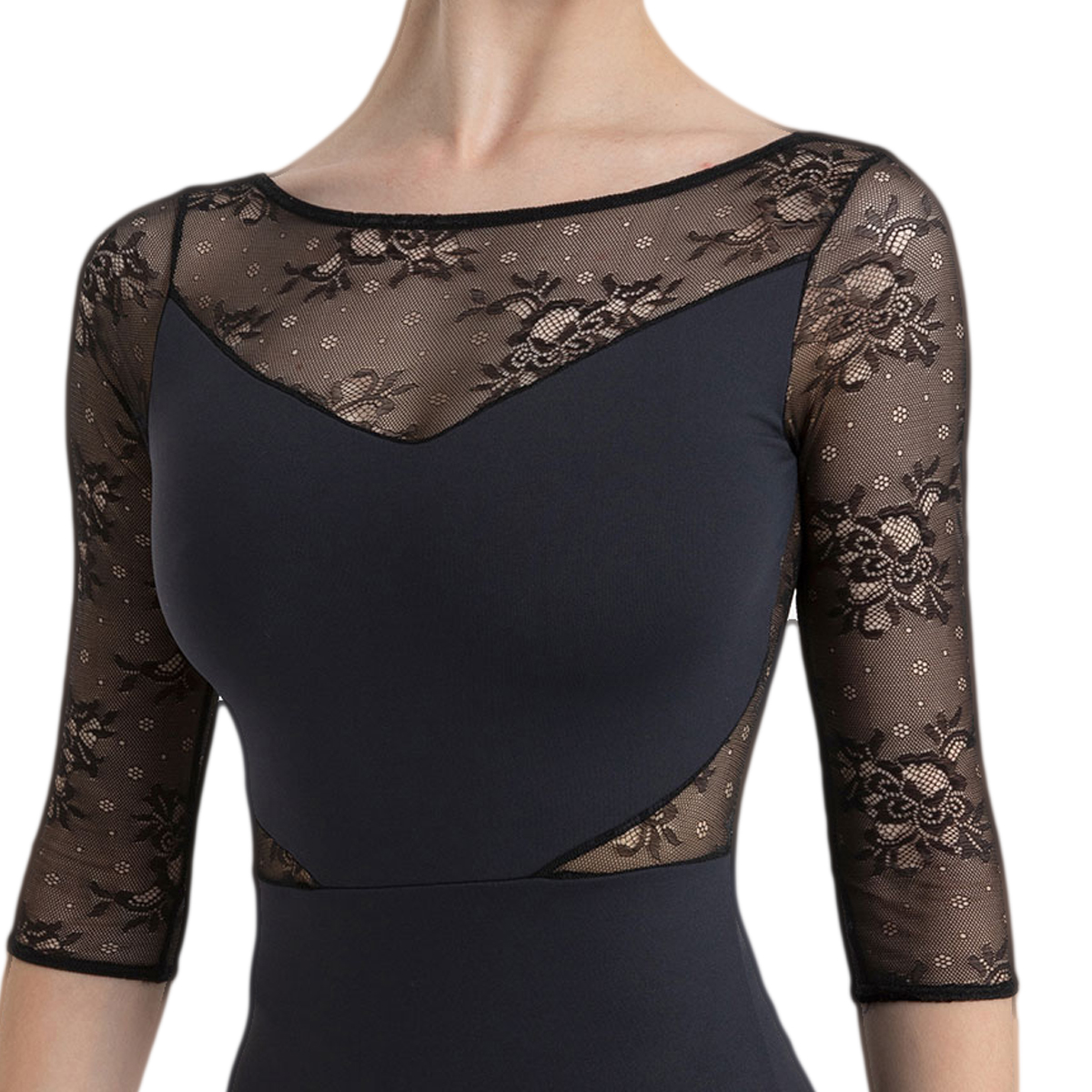 Das Balletttrikot Aurora (31625) aus dem Hause Intermezzo mit wunderschönen Mesheinsätzen mit floralem Design.
