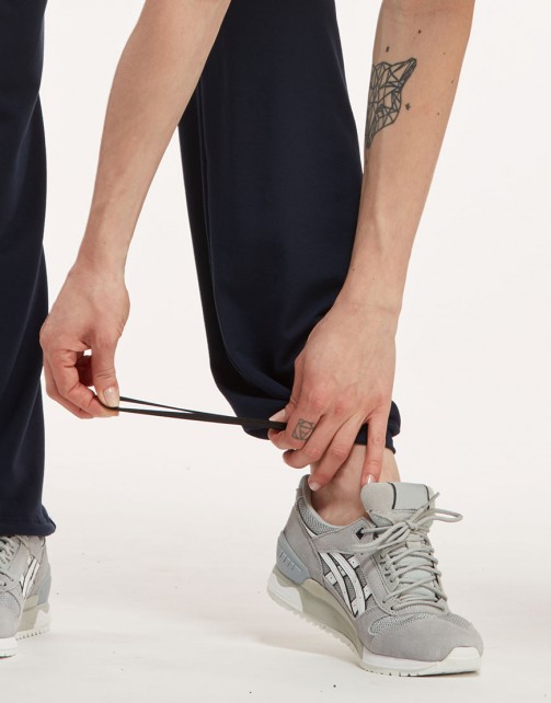 Gerade geschnittene Jazzhose Alabama aus dem Hause TempsDanse mit einem elastischen, weichen Bund für guten Halt und einem unsichtbaren Tunnelzug am Beinabschluss für eine perfekte Anpassung. In Schwarz oder Indigoblau.