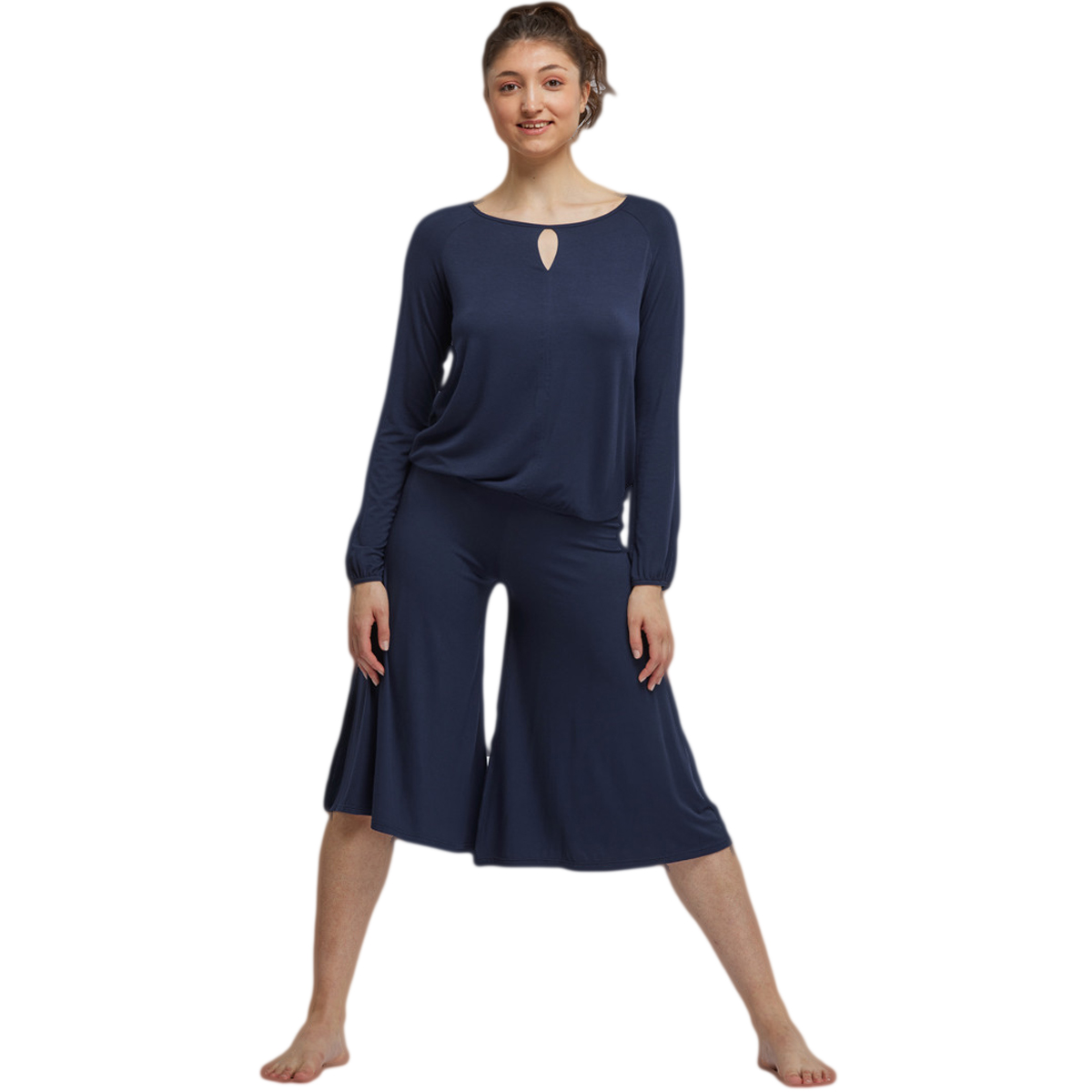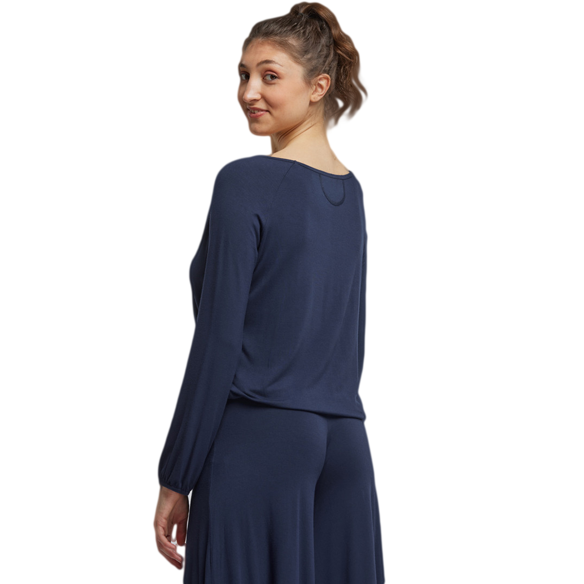 Das langärmliges T-Shirt BALSA aus Bambus Viskose kombiniert Weiblichkeit und Komfort dank der Elastizität des Gewebes. Man kann es perfekt mit allen Hosen tragen. Ideal für Tanz, Yoga und Cocooning.