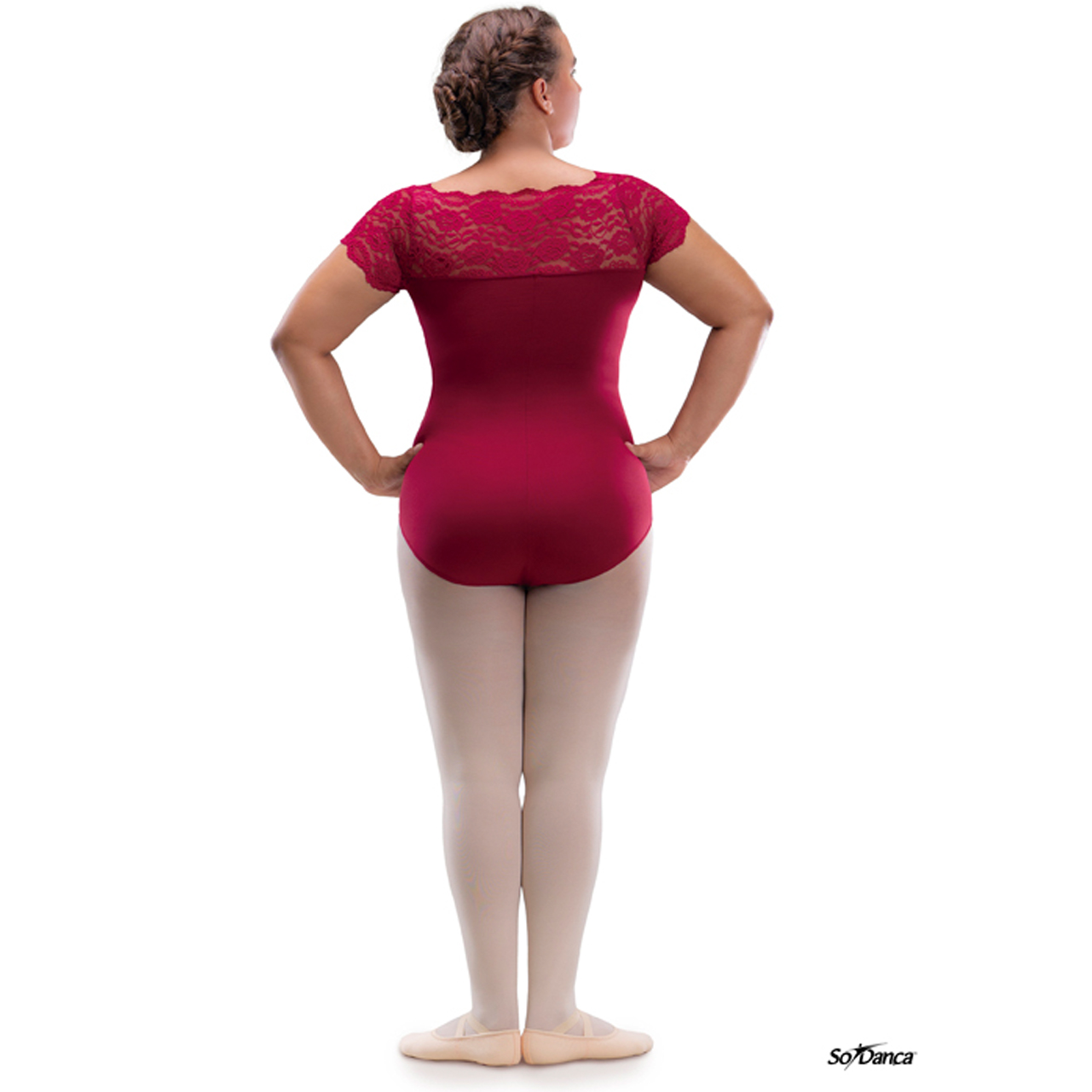 Aus dem Hause So Danca stammt dieses elegante Damen-Trikot. Hochwertige Spitze wird im Oberbereich vorne und hinten, sowie in den Ärmeln verarbeitet. Durch den hohen Elasthan Anteil passt sich dieser Body der Figur hervorragend an und die Tänzerin ist in der Bewegung nicht eingeschränkt. Ein vielseitig einsetzbares Trikot, von Ballett bis zum Standardtanz!  Hier endlich die langersehnten Plus Size Grössen für die curvy Ballerina..