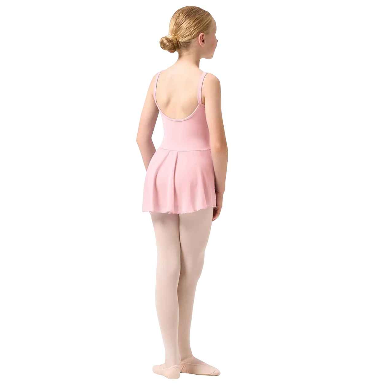 Das Balletttrikot mit Röckchen für Mädchen verfügt über ein Oberteil mit Prinzess Nähten, Camisole-(Spagetti) Trägern und einen angenähten Georgette-Rock. Teil der Bloch Rose Vine-Kollektion für Mädchen mit exquisiten geflockten Blumendetails und zarten Netzeinsätzen.