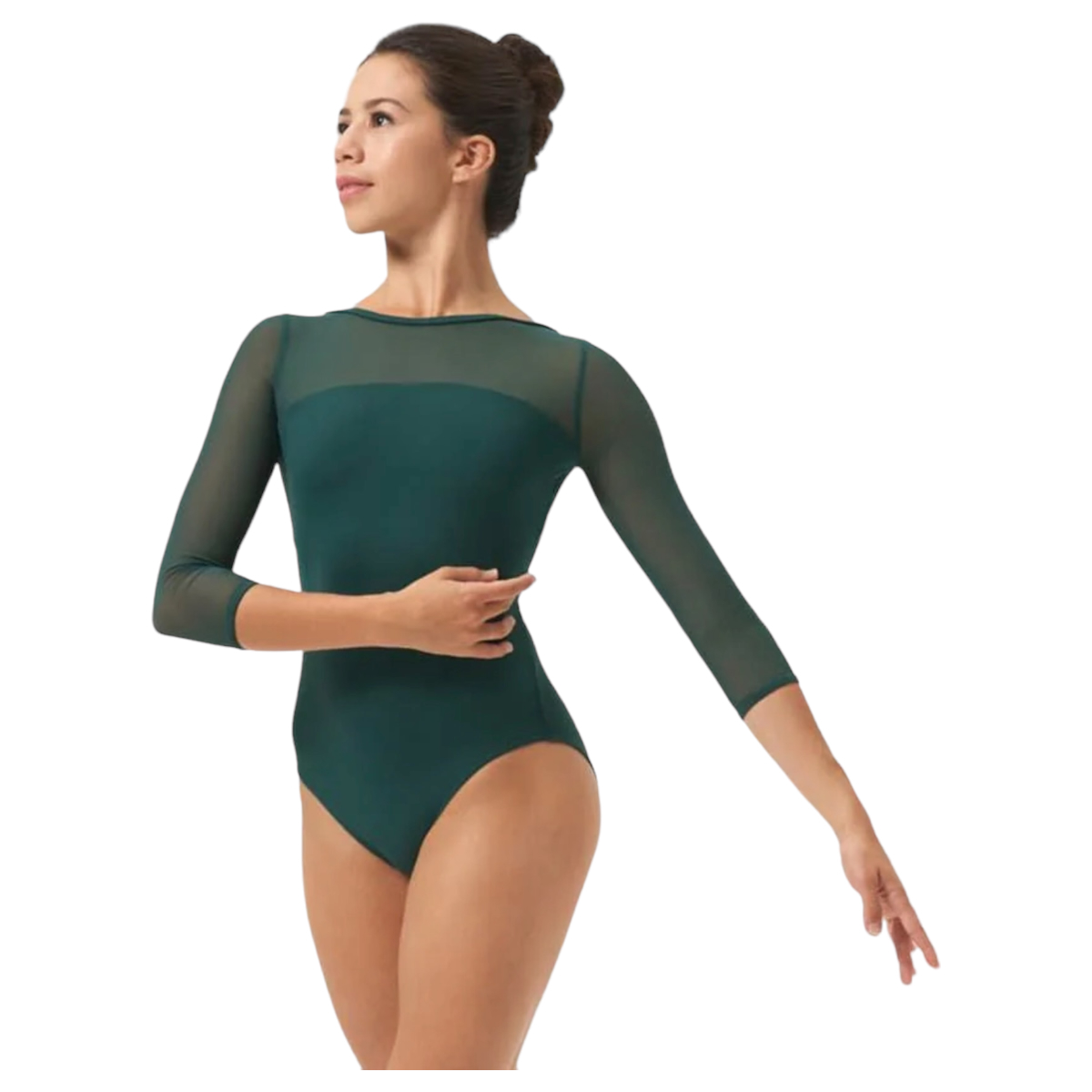 Die Kombination aus Mode und Tanz ist dieses 3/4-Arm Ballett Trikot – ein "Must Have" für jeden Ballerina Kleiderschrank - mit 3/4-Ärmeln aus Mesh mit einem mit Mesh unterlegtem Rückenausschnitt mit dreifach überkreuzten Riemchen - in dunklem Flieder, smaragdgrün oder schwarz