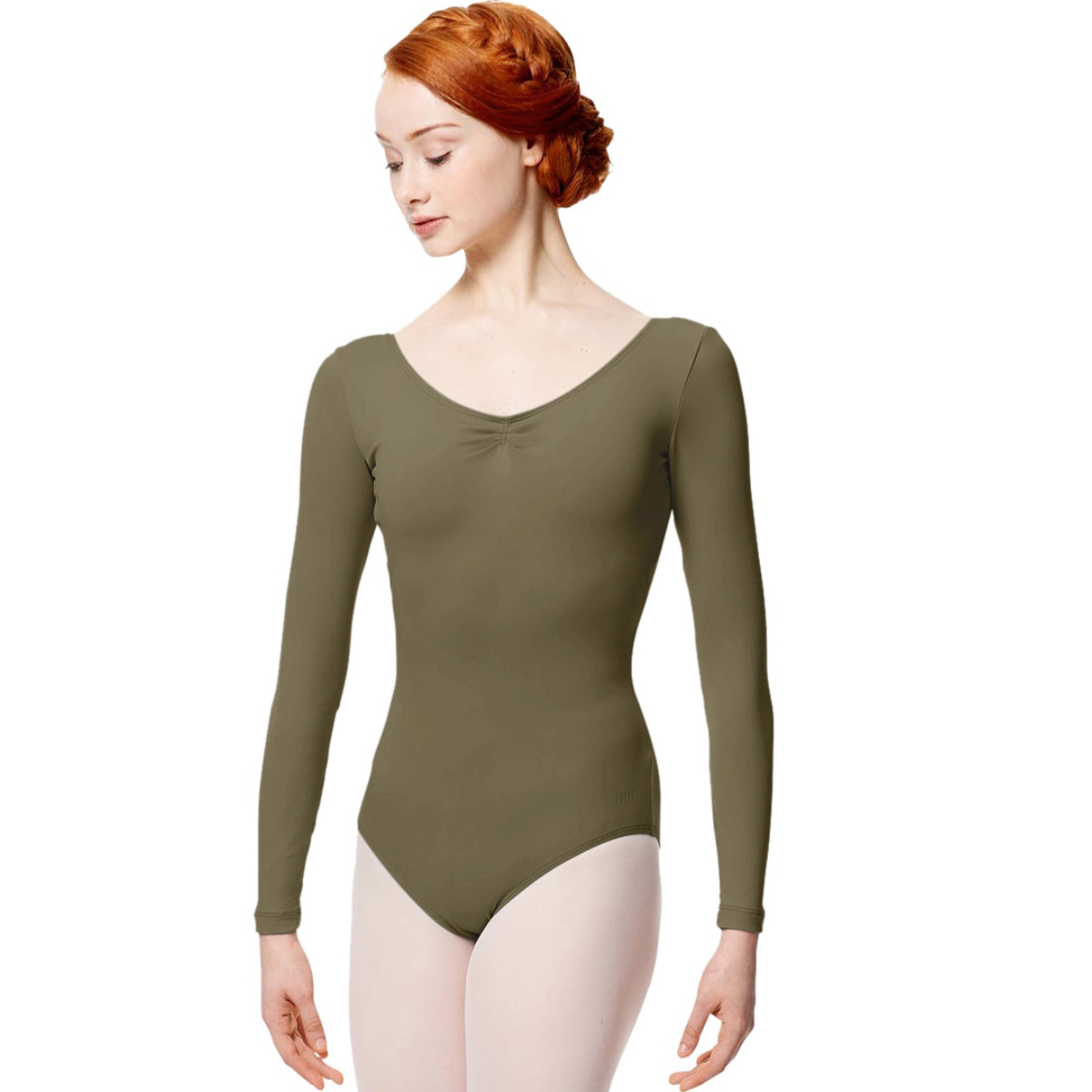 SAMANTHA - ein Balletttrikot mit langen Ärmeln. Beste Tactel Qualität, mit viel Elastan für ein wunderschönes Aussehen, Gefühl und guen Sitz. Ideale RAD-Tanzbekleidung. Viele schöne Farben im Angebot (rufe uns an wenn Du einen Spezialwunsch hast) - es ist ein sportliches Langarmtrikot mit einem kleinwenig gerafftem V-Ausschnitt vorne und mittelhohem Ausschnitt hinten.