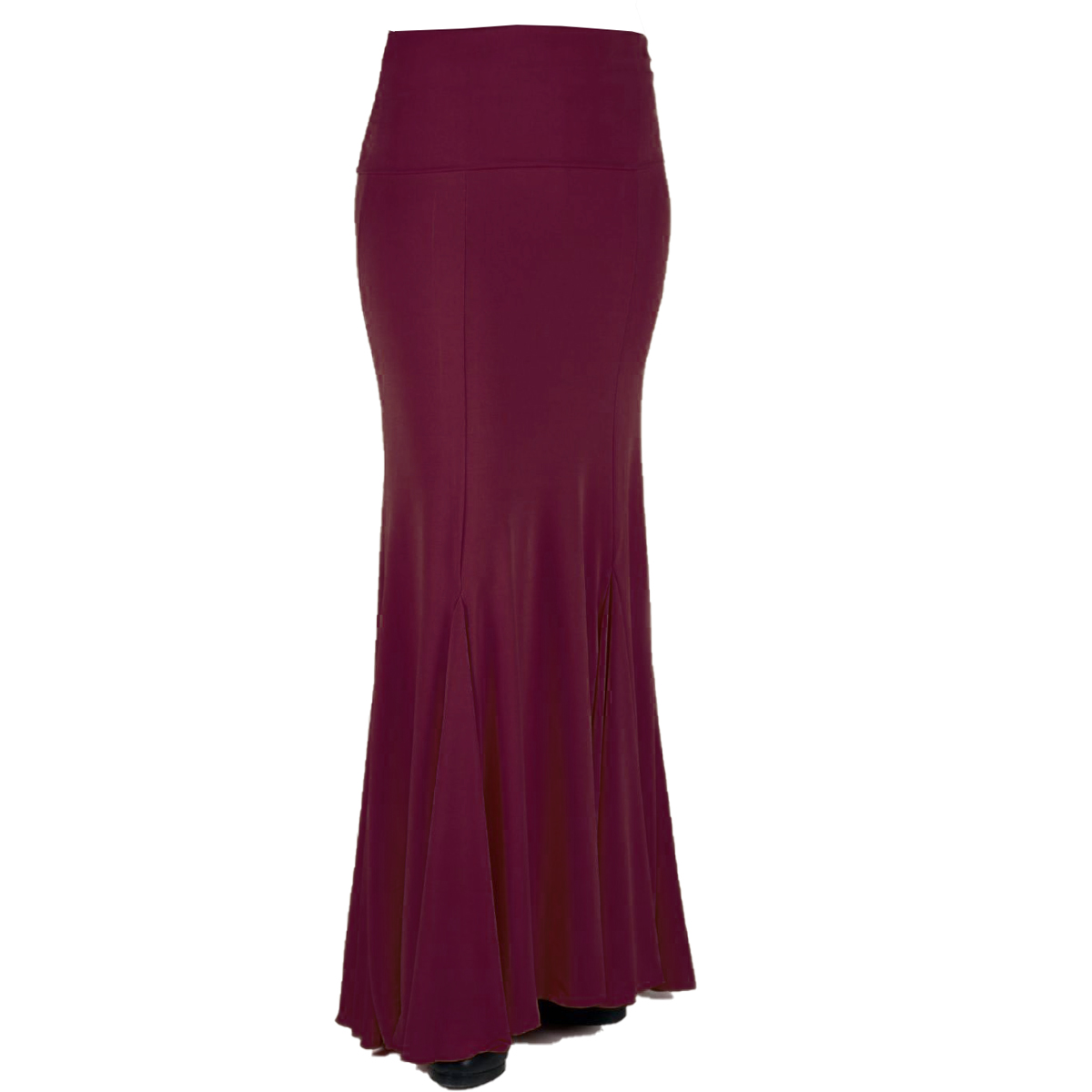Ausgefallener schmal geschnittener 6-Bahnen Rock mit breitem Roll-Bund der über die Hüfte gelegt werden kann, in der unteren Hälfte sind 6 großzügige Keile eingearbeitet für üppige Weite im unteren Bereich, 91 % Polyesther mit 9 % Elasthan - Flamencorock Ogalla (100% Poliamid) ohne Volants mit Godets hat 2 Funktionen. Fällt klein aus !! Tragbar als Hüftrock oder hoher Taillenrock! Rockweite ca. 5 m. Auch von großen Damen sehr gerne als Standardrock gekauft !!!