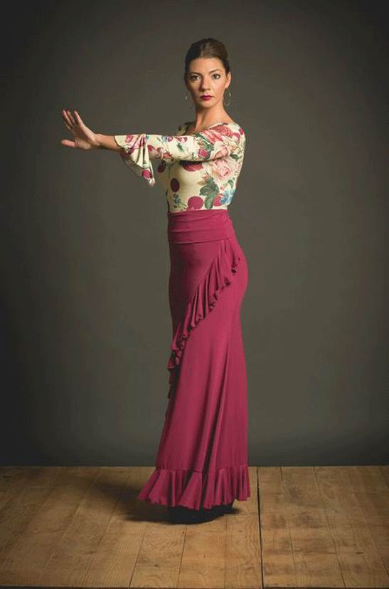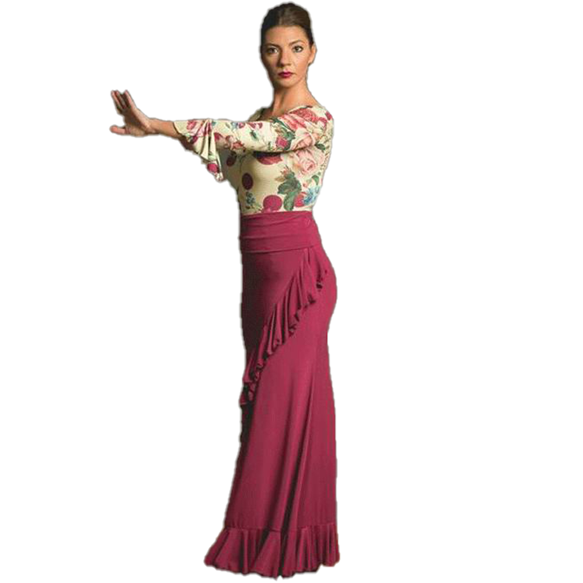 Body in schönen Sommerfarben wie Grundfarbe Vanillegelb und floralem Design in Grün und Heidelbeertönen mit Volant Armabschlüssen - Perfekt zu den neuen dunkelgrünen oder dunkel fuxiafarbenen Flamencoröcken - Das bringt den Sommer - das bringt Spanien in Ihre Flamenco Outfits