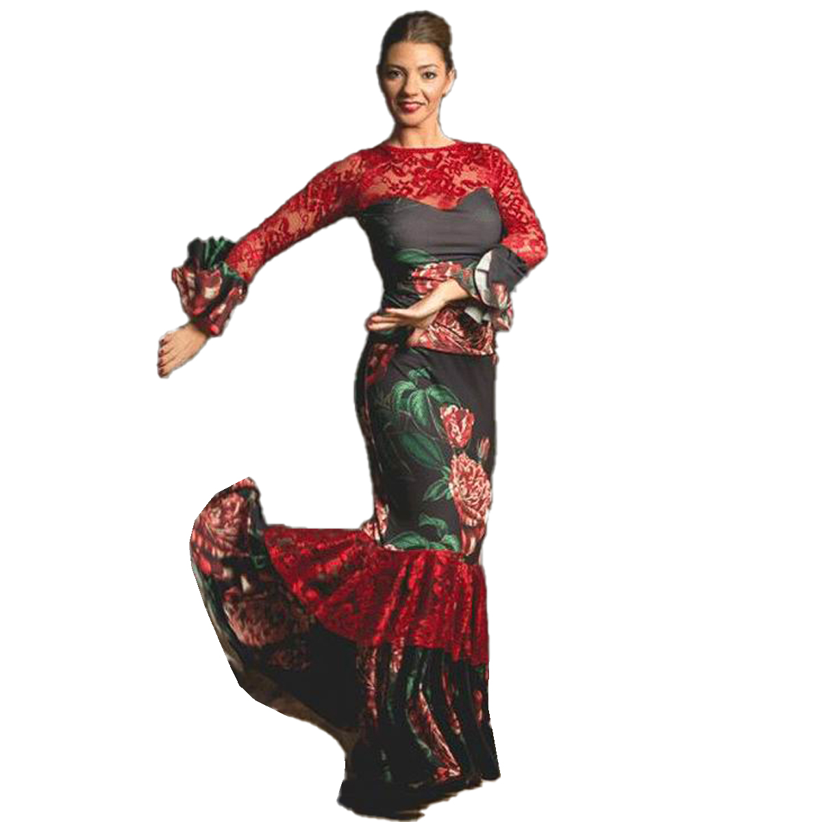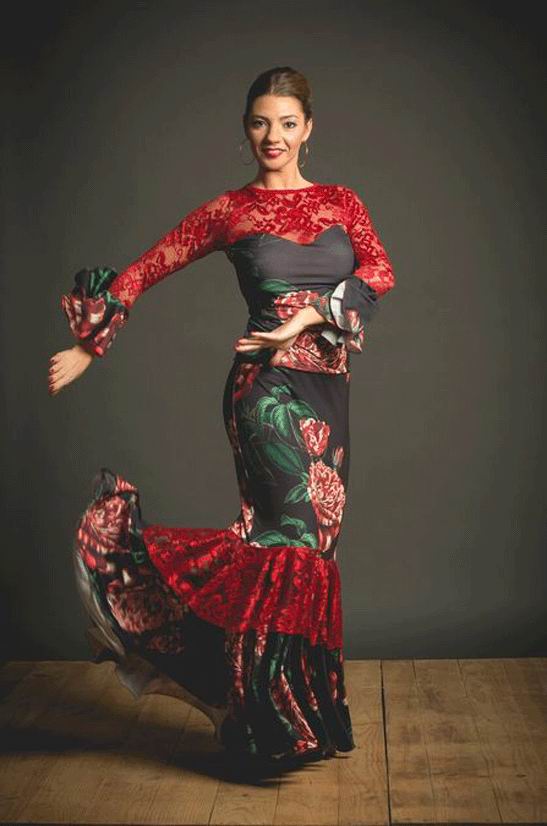 Oberteil MOLINOS von DAVEDANS - in unglaublich schöner Farbgebung von frischem Grün und Rottönen, Dekolletee und Rücken in roter Spitze, Herzchenausschnitt, Armabschluss mit Volant. Authentisch und handgefertigt in Katalonien, siehe auch die farblich passenden Röcke Jarilla und Morera oder spare beim Kauf eines Sets von Oberteil und Rock !! Provinz Barcelona aus dem liebevollen Familienbetrieb Davedans.