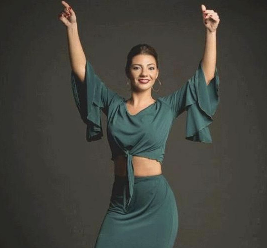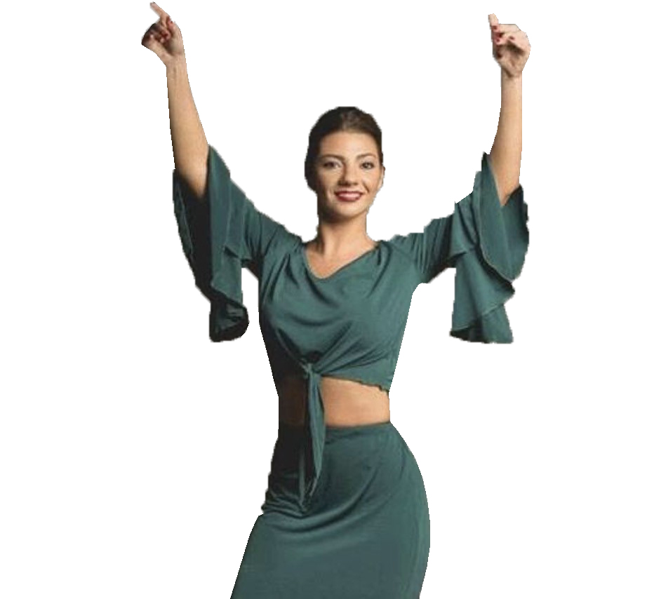 Oberteil mit Front zum Binden und weiten Doppelvolants am Armabschluss in grün von Davedans