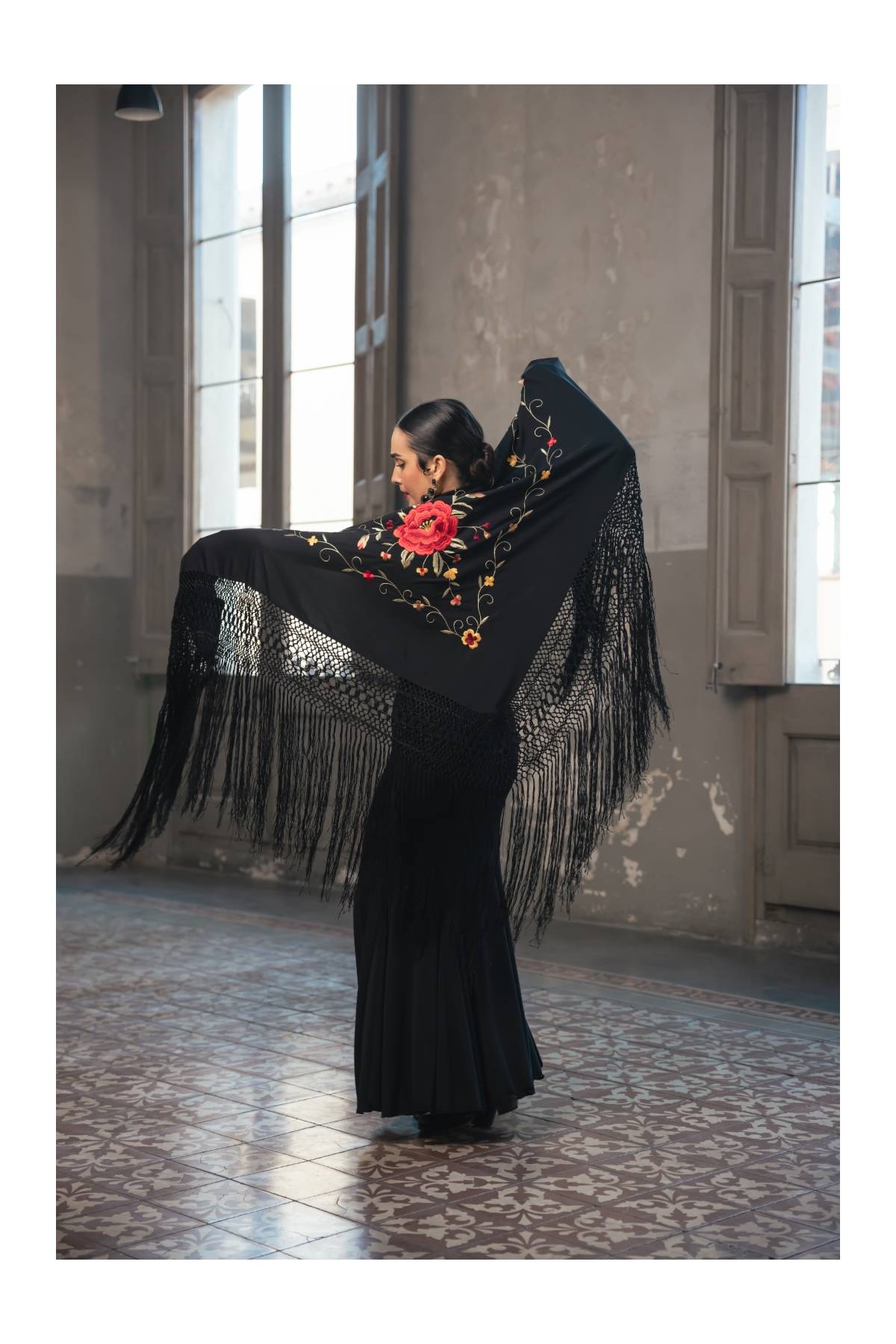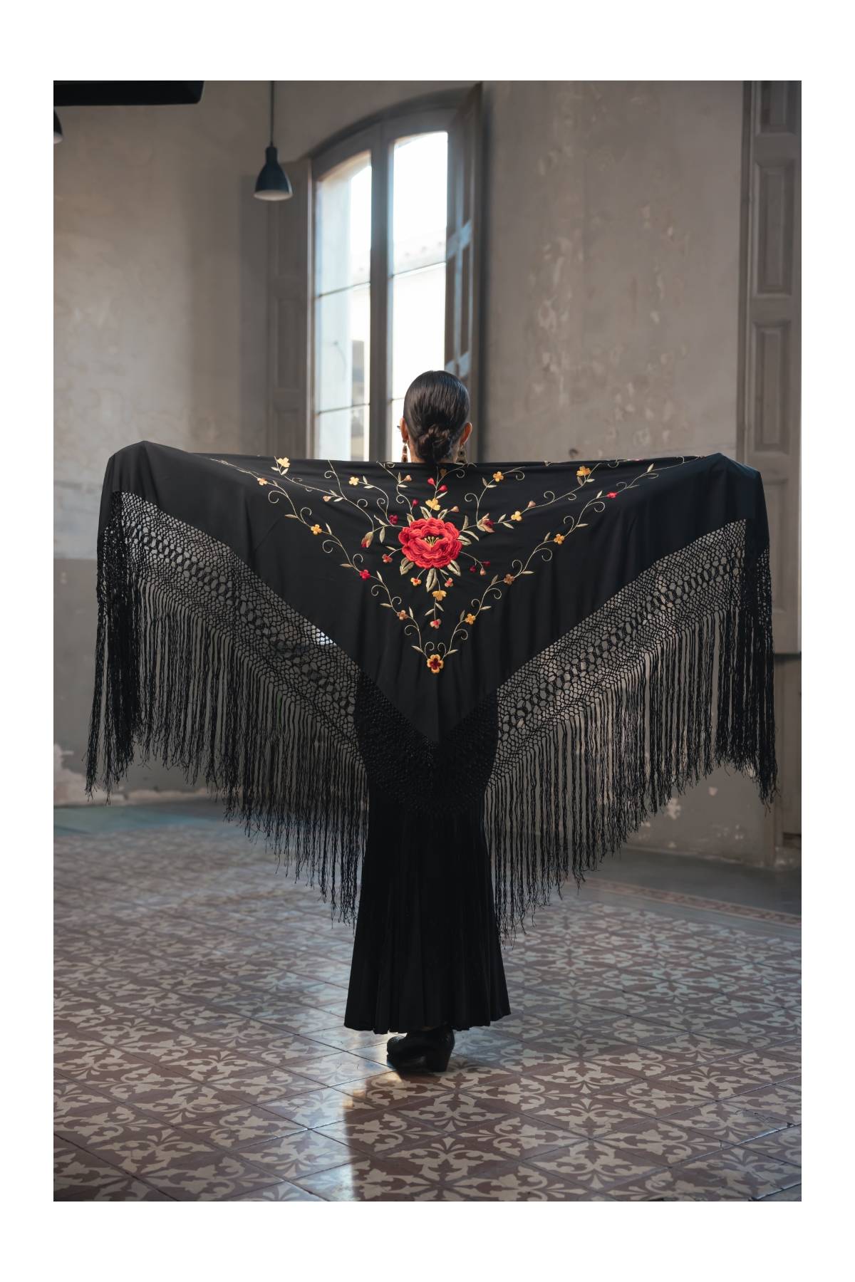 Manton - Dreiecktuch aus Kreppseide - zum Flamenco tanzen mit 40 cm Fransen - Maße: 190cm x 90cm