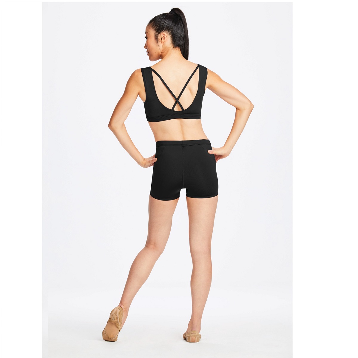Die taillierte Tech Shorts aus dem Hause Capezio in Schwarz oder Grau. Mit dreieckigen Mesh-Einsätzen am Bein.