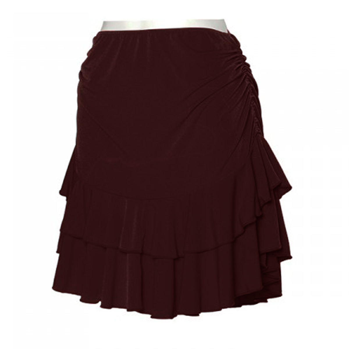 Der Lateinrock 7149 aus dem Hause Intermezzo in Schwarz oder braun mit Raffung und Verstellmöglichkeiten der Seitenlängen links und rechts (sehr variabel). Die Röcke von Intermezzo fallen eher normal aus. Wenn Sie zwischen einer Größe schwanken, wählen Sie bitte die Größere.