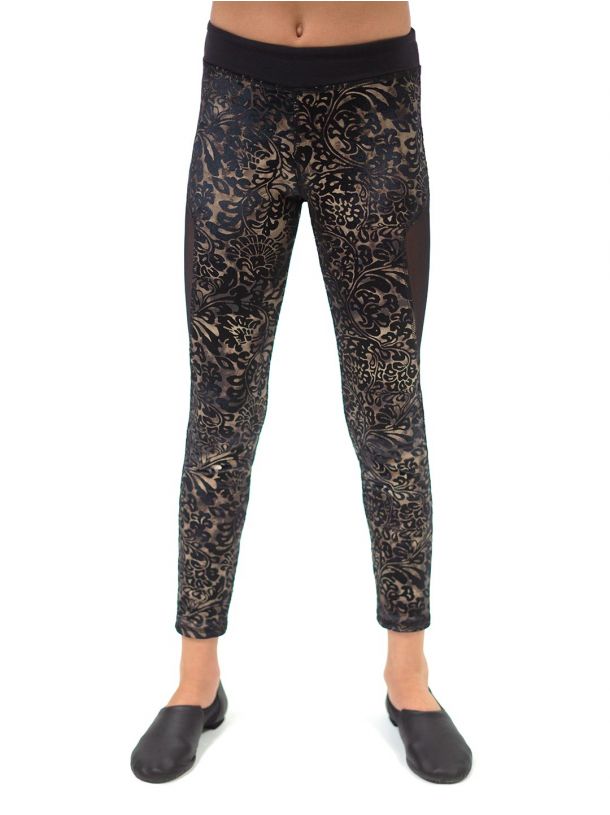 Mit den Mesh Insert Leggings 11401W aus der Damastkollektion von CAPEZIO Balletmakers kannst du deine Beindefinition unter Beweis stellen. Diese aufwendig mit Flockprint gemusterte mittelhohe Leggings verfügt über einen weichen Tactel-Bund und schlanke Mesh-Details. Seitliche Mesh-Einsätze wickeln sich um die Beine, um der Linie der Tänzerin zu folgen.