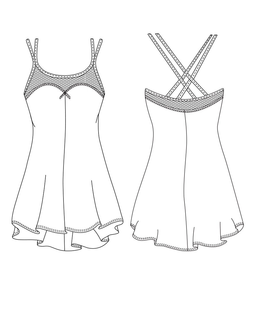 Wunderschönes Kleid mit Spagetti-Trägern und Mesheinsatz DESIR by Temps Danse, Frankreich aus weicher Viskose mit Fine-Mesh.