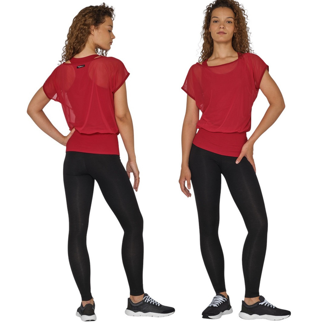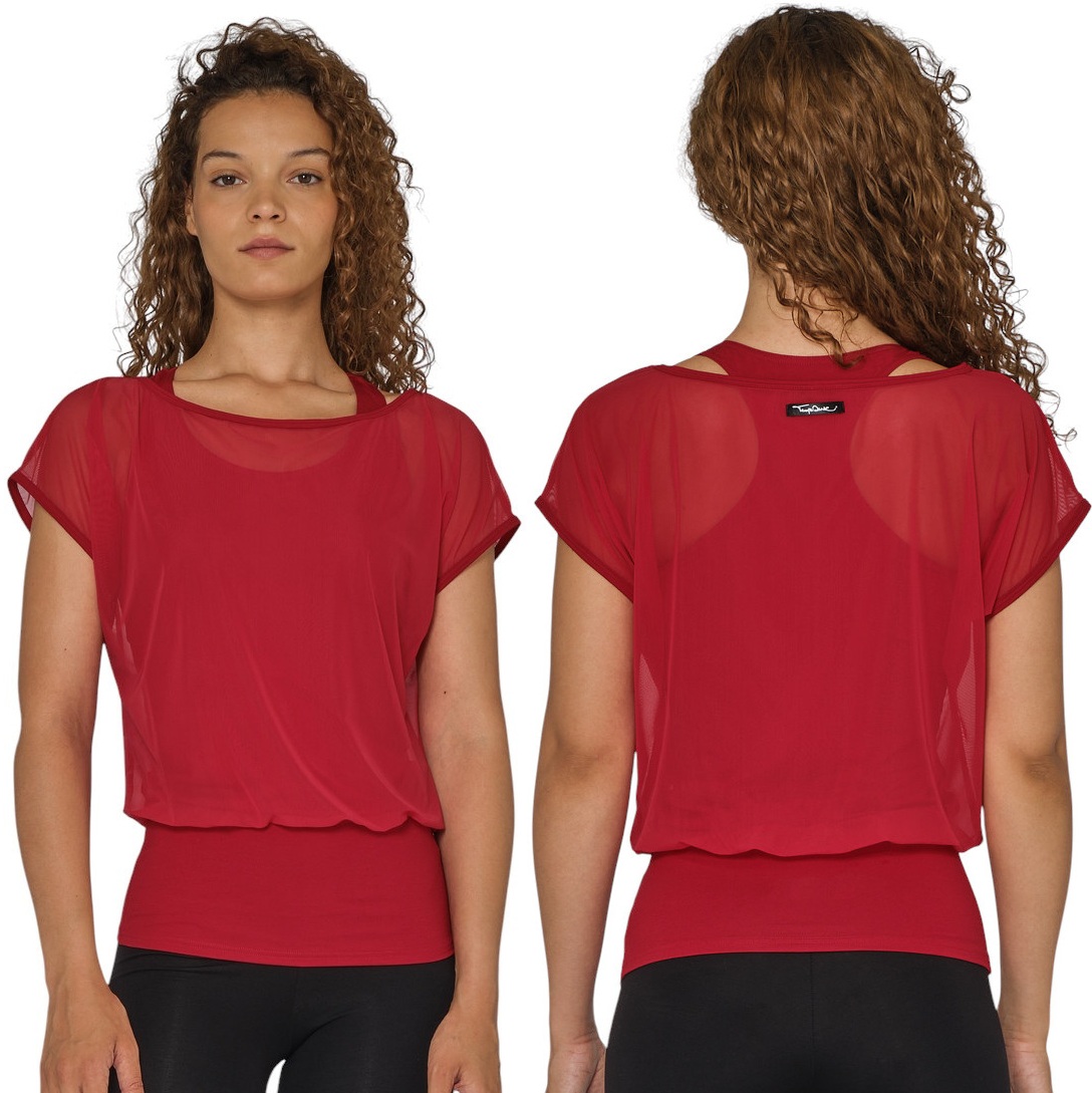 Das Tüllshirt Django mit integriertem Tanktop aus dem Hause TempsDans mit Racerback und straffer Taille, um bei Übungen nicht zu verrutschen.