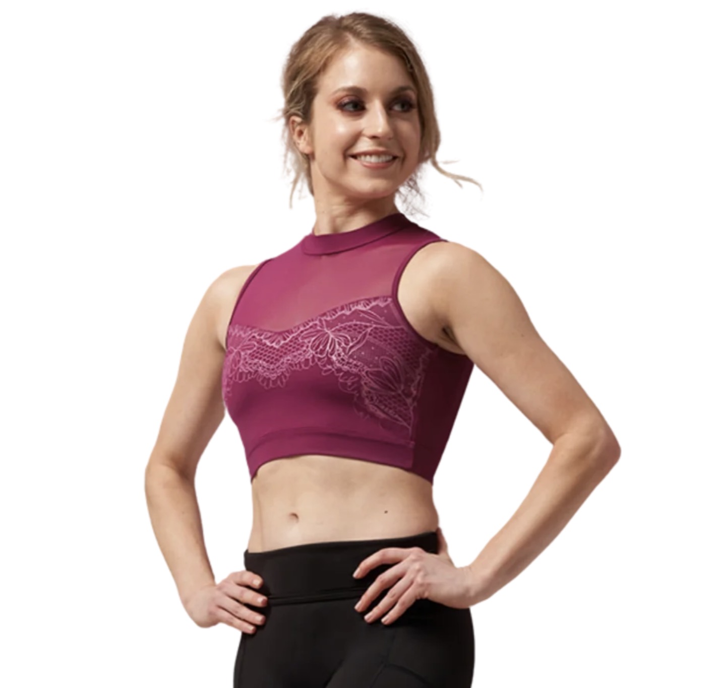 Kurzes Modern Crop Top für Yoga, Tanz und Gymnastik in drei tollen Farben mit elegantem Print. mehr