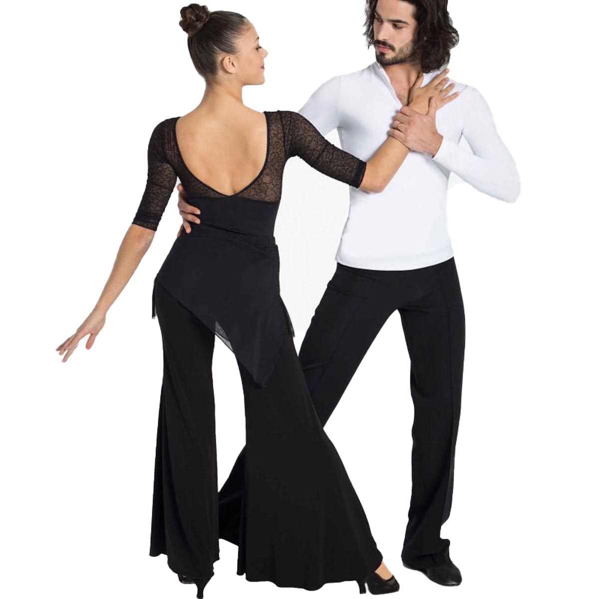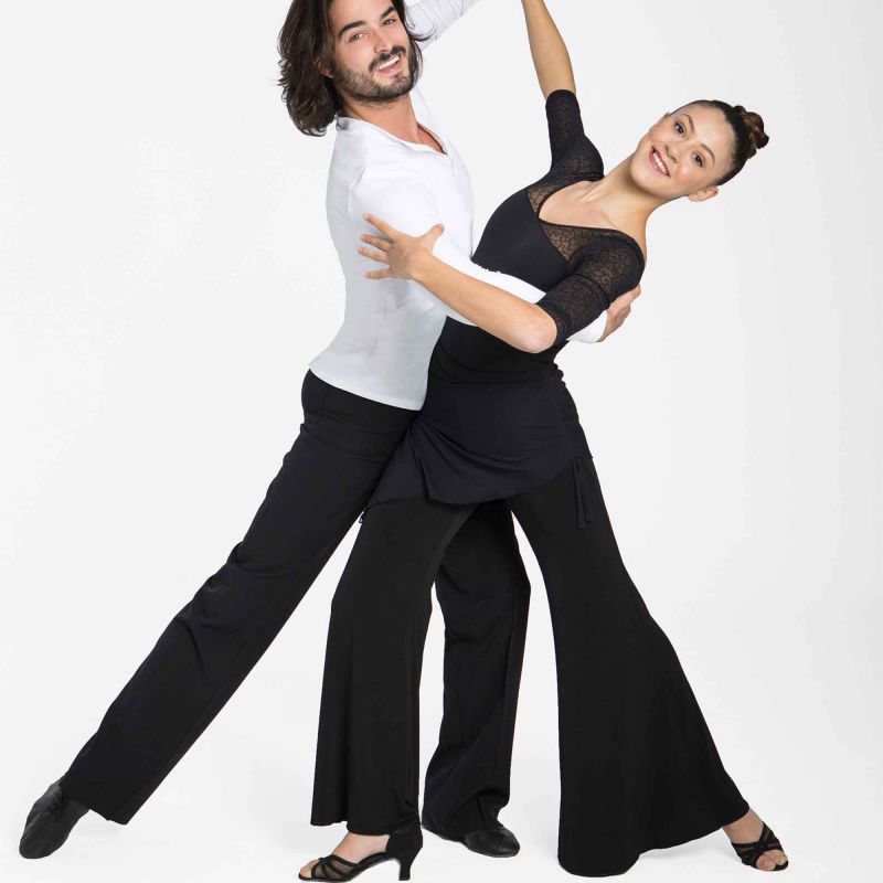 Die extravagante Tanz Hose von Intermezzo hat weit ausgestellte Beine und einen kleinen asymmetrischen Überrock aus zartem Mesh mit verstellbaren Bändern an den Seiten. Die weite Tanzhose ist für den Standard- oder Lateintanz super geeignet, wird aber auch gern für Tango oder Salsa gekauft