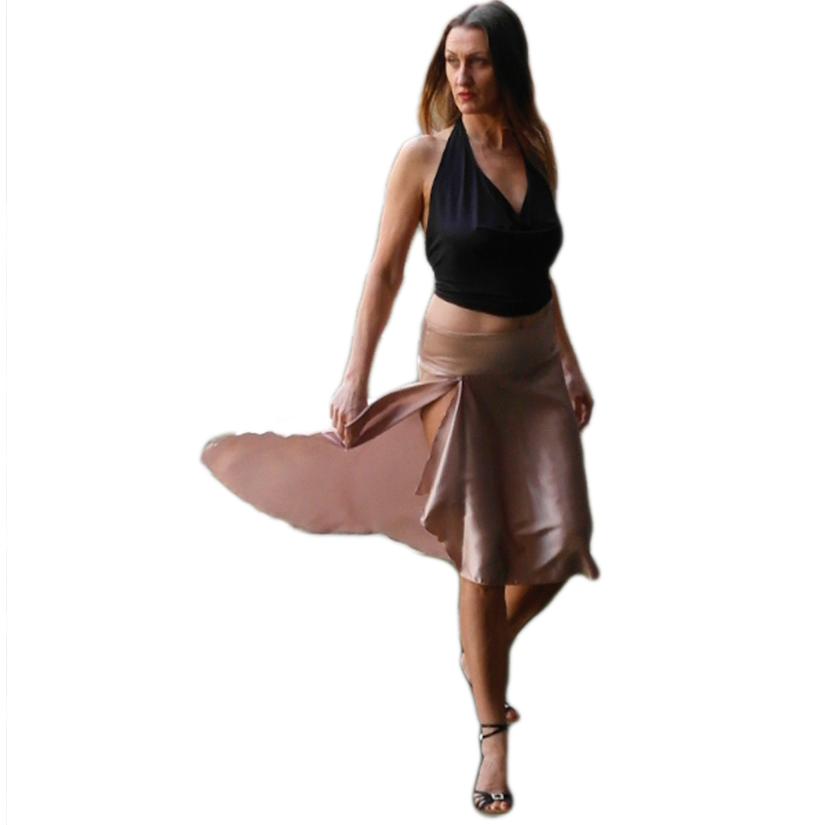 Ein Tangorock aus cipria (sandfarbenem) Seidensatin, seitlich geschlitzt, zart übereinander... mehr