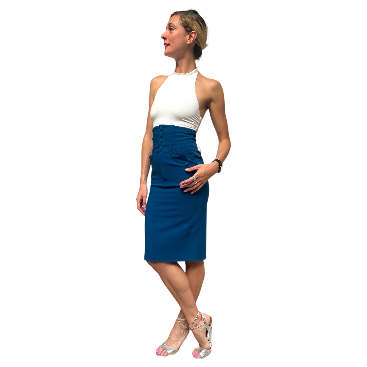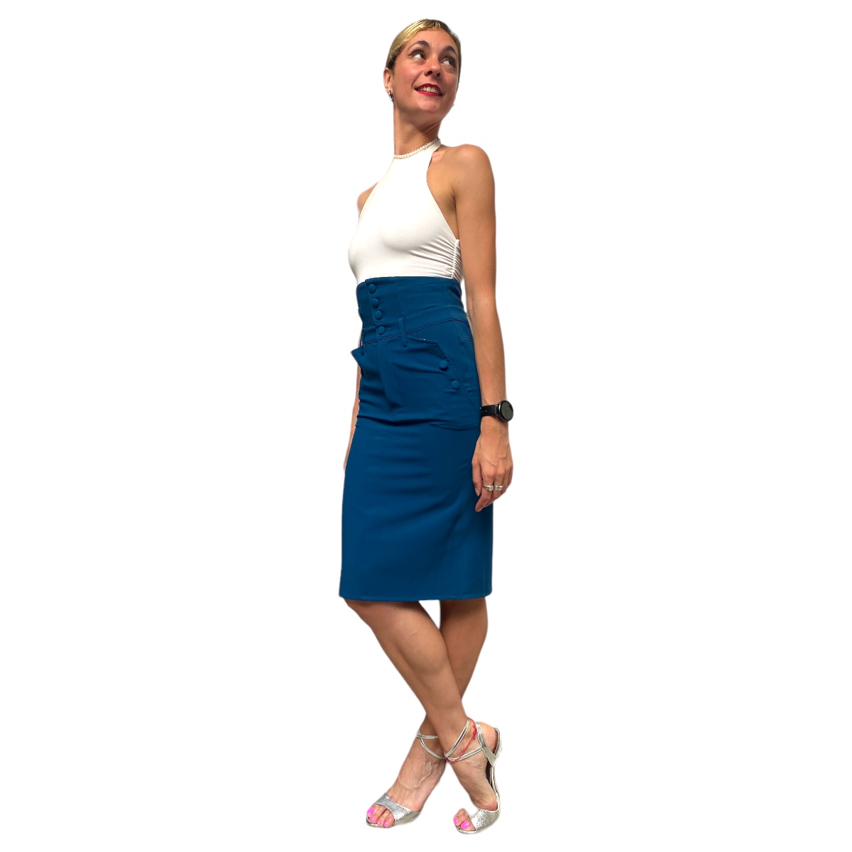 Aus der Kollektion vom argentinischen Label REVIRADA hier das Rockmodell ALTIVA in 5 Farben. Im Stil der 50er Jahre ist der Rock hochgeschlossen und mit Taschen und stoffbezogenen Knöpfen versehen. Die Grössen fallen sehr sehr klein aus, daher schicken wir bei der Auswahl XS eine Grösse S, die grösste Grösse L ist leider nicht mehr als eine deutsche M mit nicht viel Hüfte - aber traumhaft elegant und sexy ist die Tangomode von diesem Label. Nur solange der Vorrat reicht...