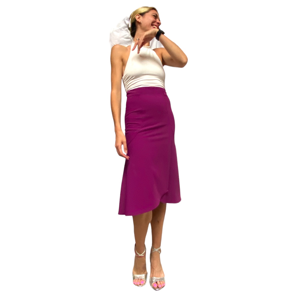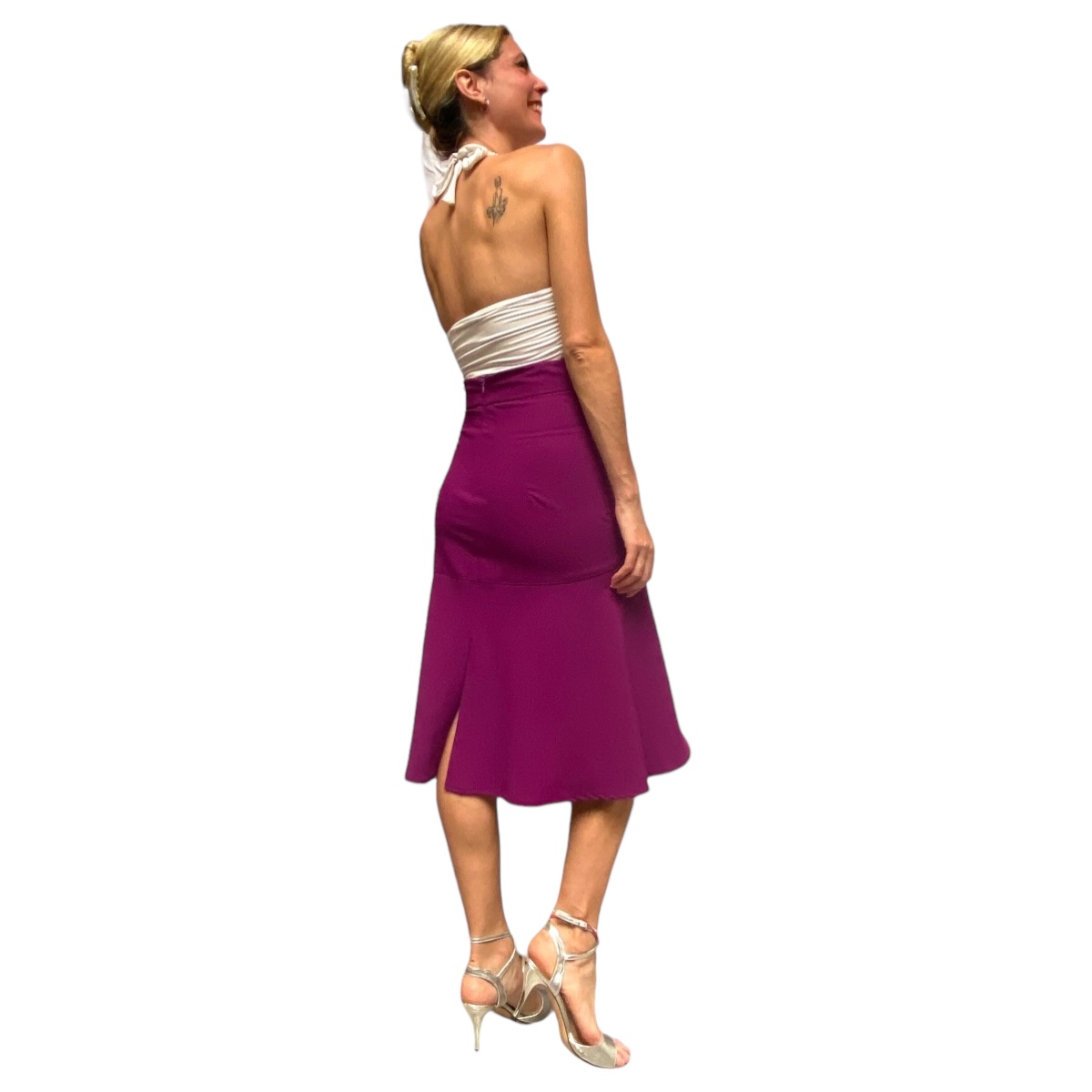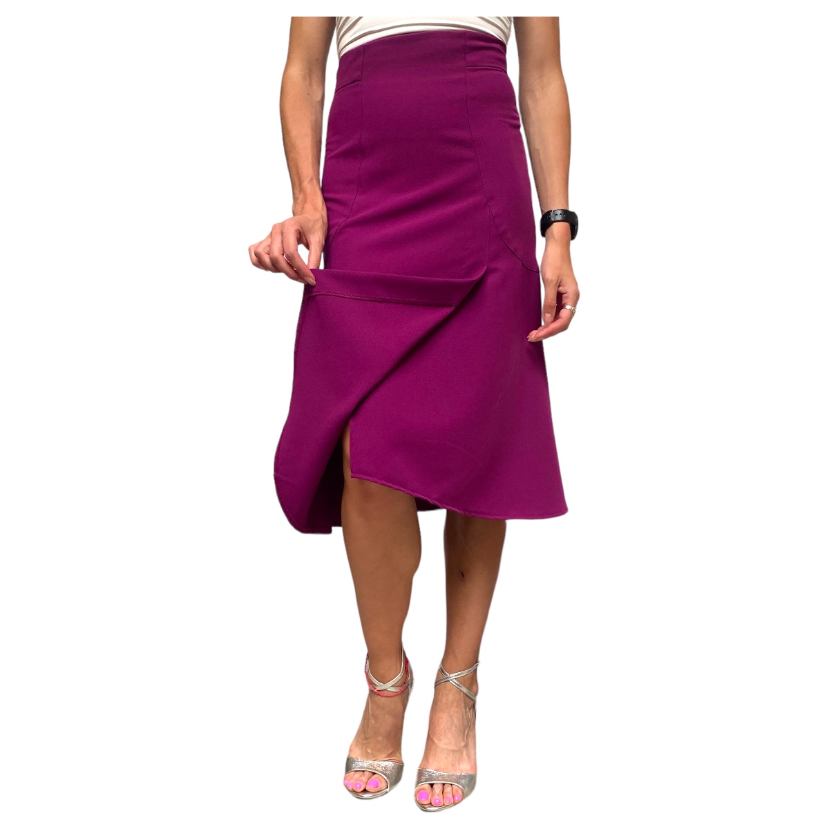 Aus der Kollektion vom argentinischen Label REVIRADA hier das Rockmodell PIBA BIEN in 4 Farben. Im Stil der 40er/50er Jahre hat dieser Rock eine A-Linie und einen überlappenden Teil vorn, der den Sclitz verdeckt. So gibt er ein wenig Bewegungsfreiheit, ohne gleich das ganze Bein zu zeigen. Die Grössen fallen sehr sehr klein aus, daher schicken wir bei der Auswahl XS eine Grösse S, die grösste Grösse L ist leider nicht mehr als eine deutsche M mit nicht viel Hüfte - aber traumhaft elegant und sexy ist die Tangomode von diesem Label. Nur solange der Vorrat reicht...
