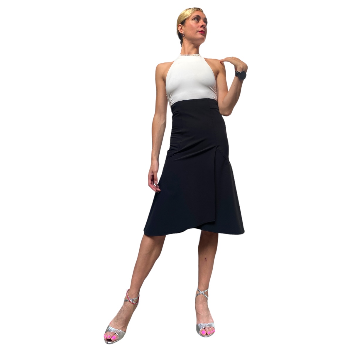 Aus der Kollektion vom argentinischen Label REVIRADA hier das Rockmodell PIBA BIEN in 4 Farben. Im Stil der 40er/50er Jahre hat dieser Rock eine A-Linie und einen überlappenden Teil vorn, der den Sclitz verdeckt. So gibt er ein wenig Bewegungsfreiheit, ohne gleich das ganze Bein zu zeigen. Die Grössen fallen sehr sehr klein aus, daher schicken wir bei der Auswahl XS eine Grösse S, die grösste Grösse L ist leider nicht mehr als eine deutsche M mit nicht viel Hüfte - aber traumhaft elegant und sexy ist die Tangomode von diesem Label. Nur solange der Vorrat reicht...