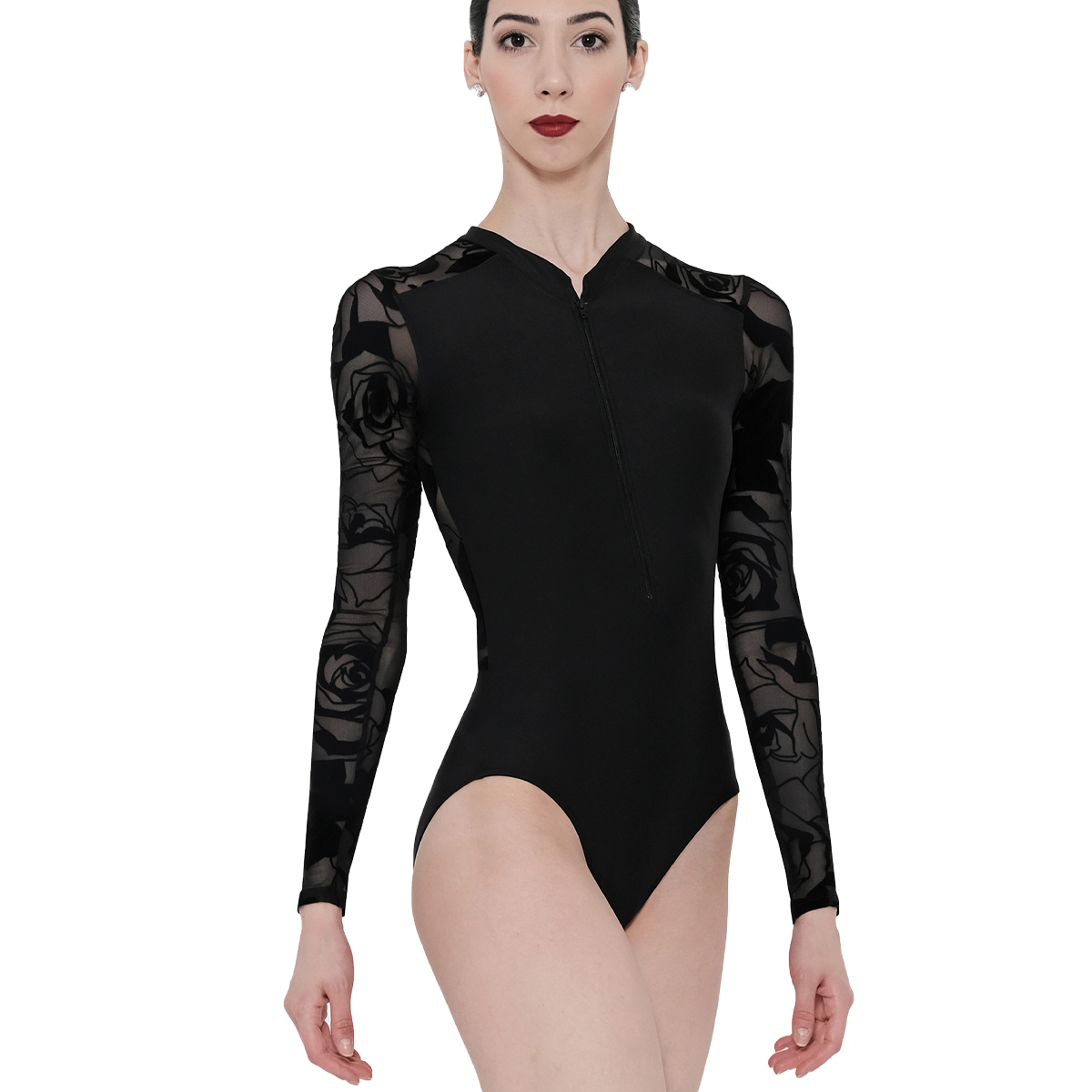 Made in France – made by Wear Moi – das steht für Eleganz und anspruchsvolle Ballettmode. Hier das Trikot FELICITE aus weicher Mikrofaser mit kleinem Stehkragen und Reißverschluss vorn zum bequemen Anziehen. Highlight ist natürlich die Rückseite mit einem Rosen-Flockprint-Design auf weichem schwarzem Stretch-Mesh. Tragen es am Abend zu Deiner Jeans, um einen doppelten Nutzen zu erzielen und Deine Abendgarderobe zu bereichern...