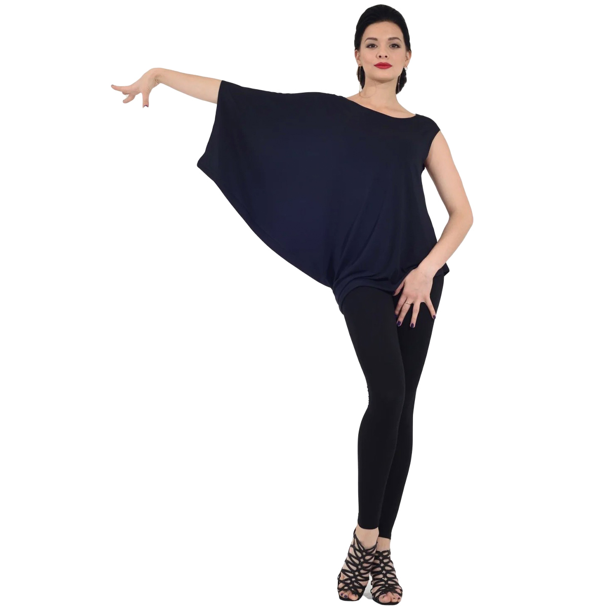 Hebe Dich in dieser dramatischen asymmetrischen Tunika mit Fledermausärmel hervor. Genieße die Kühle und den seidigen Griff dieses luxuriösen Stoffes. Perfekt für einen Tanzkurs oder zum Ausgehen. Kombinieren Sie es mit Deiner Lieblingsjeans oder Leggings, oder perfekt mit der Marlene Pant aus derselben Kollektion