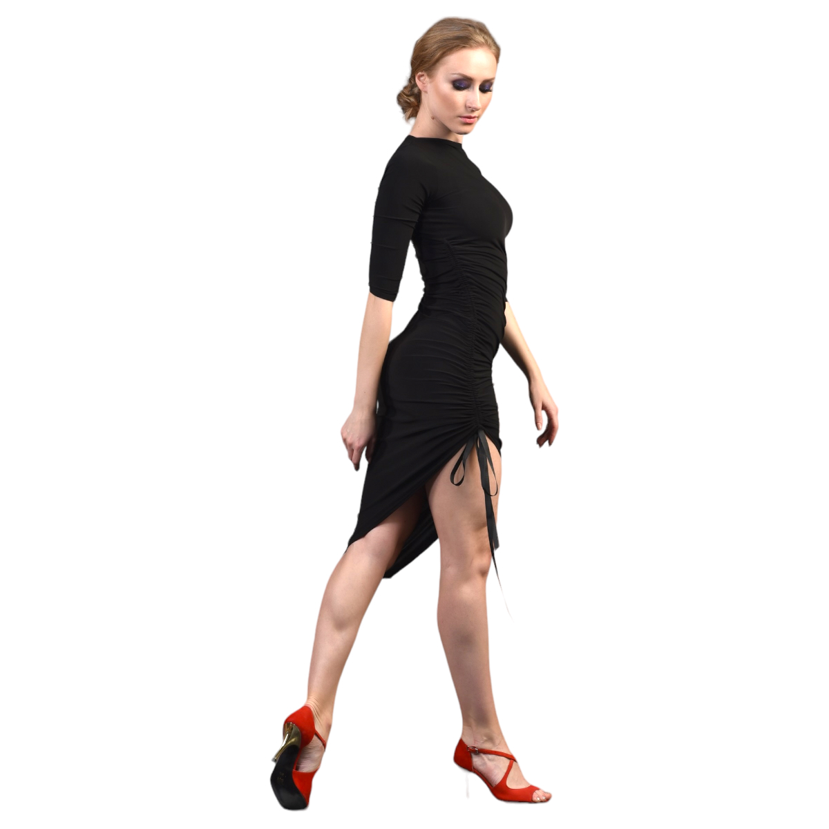 Genieße jede Deiner Bewegungen in diesem schlichten und eleganten Tangokleid mit einer super bequemen seitlichen Raffung, die Dir einige Längenvariationen ermöglicht. Es liegt also an Dir, zu faszinieren oder zu provozieren ...