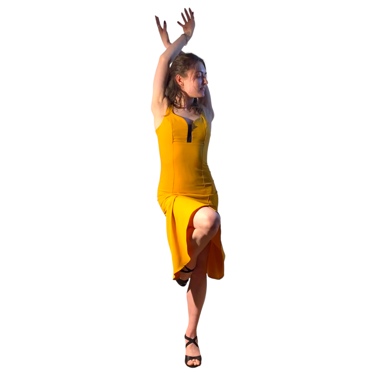 Tangokleid Pupila vom argentinischen Label Revirada in 4 tollen Farben = magenta, grün, sonnengelb und königsblau.