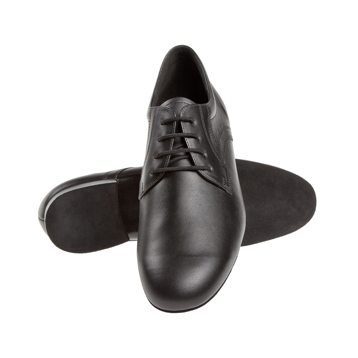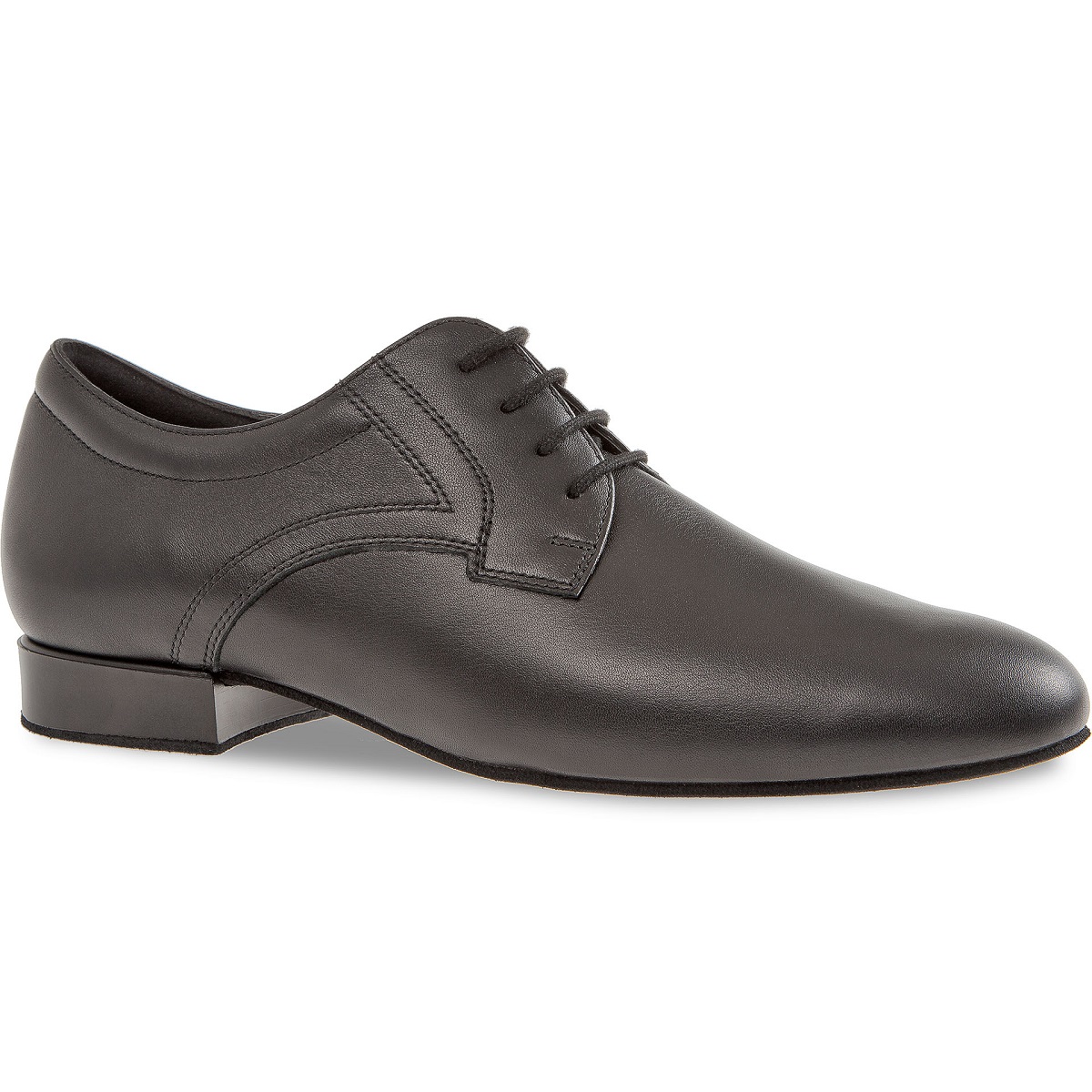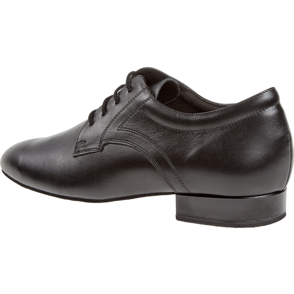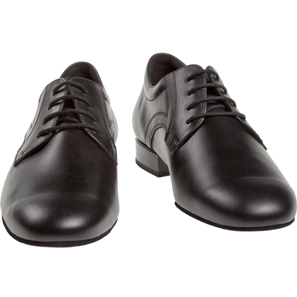 Mod. 085 Diamant Herren Tanzschuhe Made in Germany handgefertigt in klassischer Plain Derby Ausführung mit offener 4-Loch Schnürung und gepolstertem Schaftrand. Dieser Tanzschuh wird in der Weite G (Normalweite) mit einem Schock absorbierenden 2 cm Standard Absatz hergestellt. Als Innenauskleidung wird ein atmungsaktives, antibakterielles und Feuchtigkeit absorbierendes Microfaser aus italienischer Premium-Herstellung eingearbeitet. Für das Obermaterial aus schwarz Echtleder wird ein hochwertiges Rindnappa aus Italien verwendet.