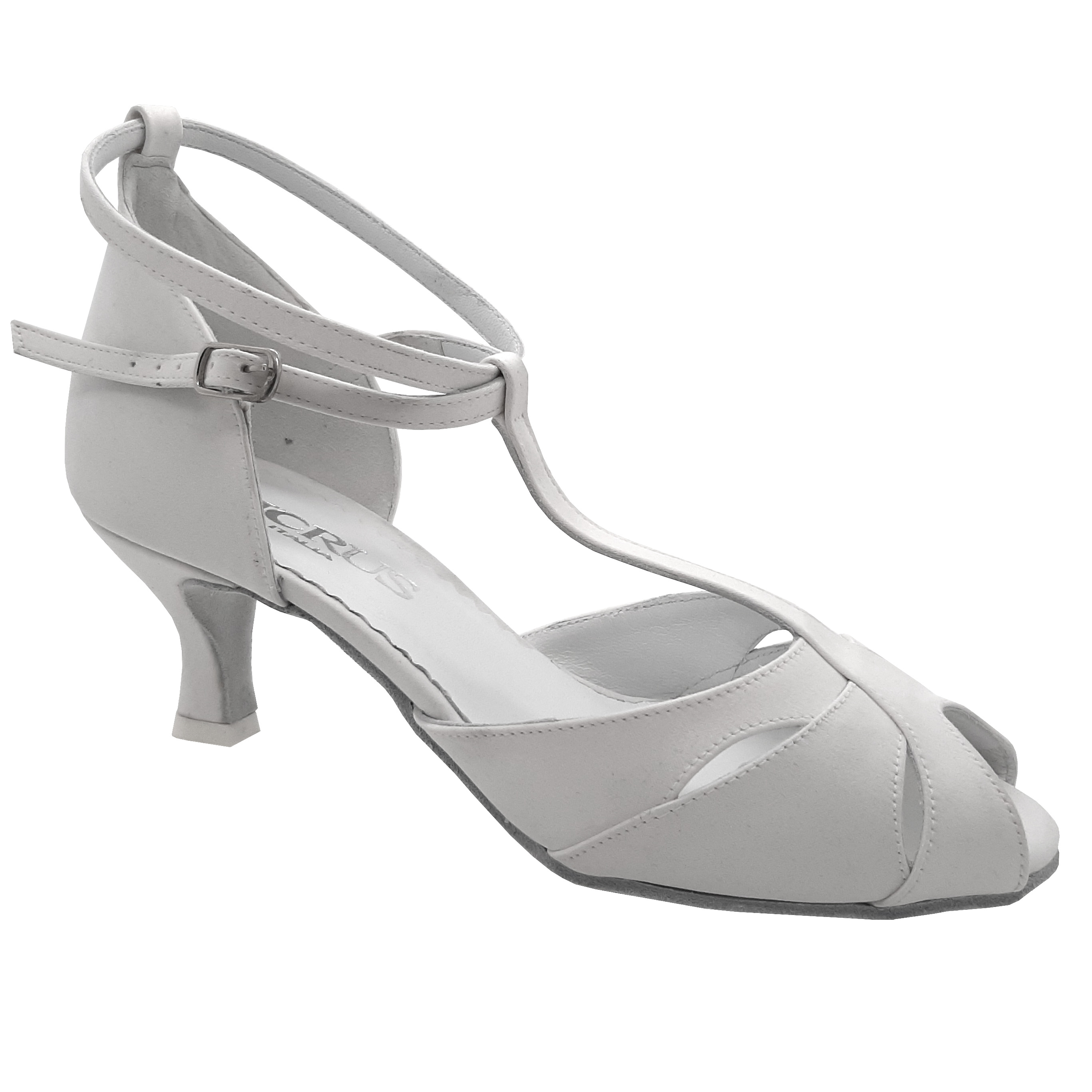 Das klassische Tanzschuhmodell 415  (Boca de Leone) in weiß Satin als Brautschuh. Eines der bequemsten Modelle aus der italienischen Tanzschuh-Serie von Horus. Ein Mittelsteg mit doppeltem Fesselriemen, gefertigt aus Satin. Die Zehenöffnung nicht zu groß (damit keine Zehen durchrutschen) und der Absatz mit seinen 6 cm nicht zu hoch - damit Dein schönster Tag auch kein unbequemer wird. Griffige Wildledersohle für einen sicheren Hochzeitswalzer !! und eine durchtanzte Hochzeitsnacht...