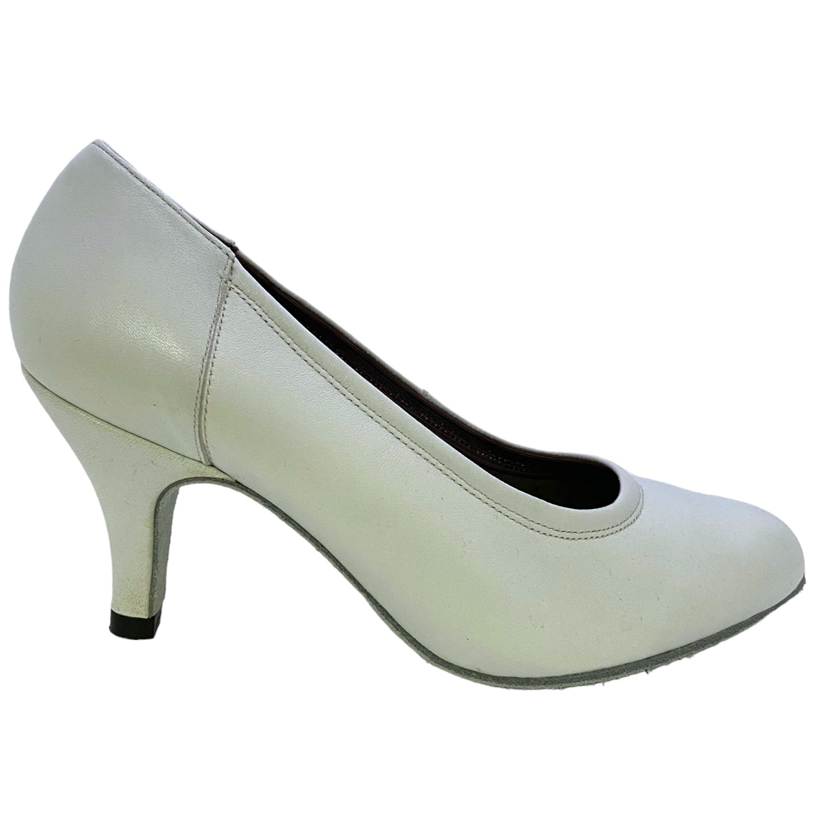 Der Pumps Rhinestone aus weißem Leder mit Velourledersohle und 6 cm Absatz, besonders ist die weich gepolsterte Innensohle (extrem bequem) - Auslaufmodell, nur noch Restgrössen !!