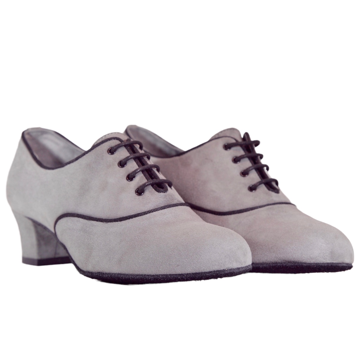 Eleganter Damen Trainerschuh in weichem Ziegen-Veloursleder in grau mit schwarzen Paspeln, in diesen Farben für Isabell Edvardson (Let's Dance) designed, hat er soviel Anklang gefunden, das wir ihn ins Programm aufgenommen haben.. Absatz 40mm, griffige Wildledersohle
